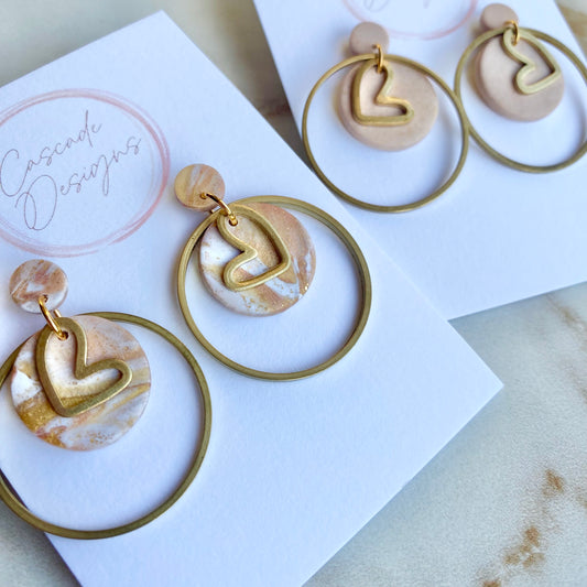 The Juliet | Luster and Pink Bubble Heart Clay Earrings