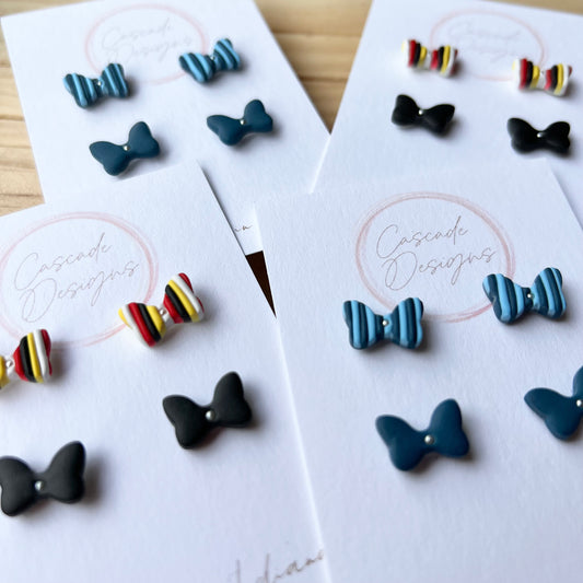 The Micki Bow at Sea | Striped Bow and Pearl Stud Earrings - Set of 2