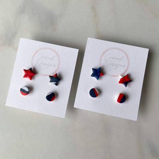 The April Patriotic | Mini Flower Clay Earring Studs - Set of 3