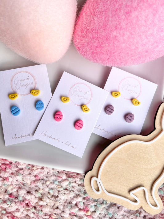 The Chick | Mini Chick and Easter Egg Clay Stud Earrings