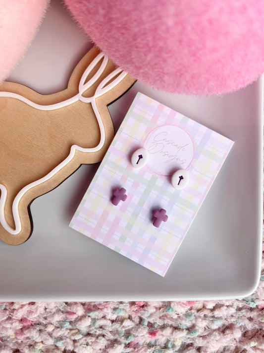 The Christian | Mini Cross and Egg Clay Earring Studs - Set of 2