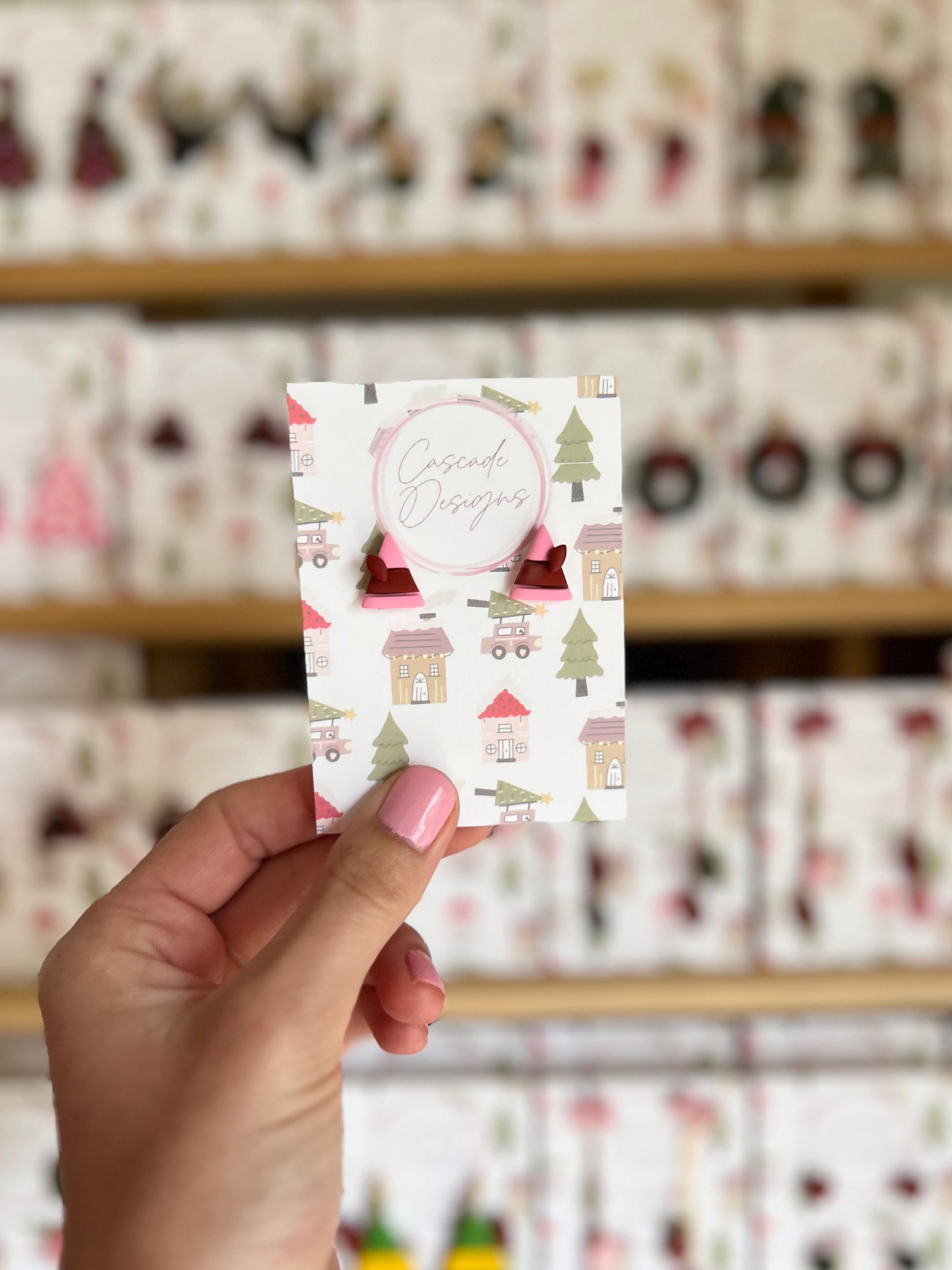 Add a touch of whimsy this winter with these feathered hat earring studs.
