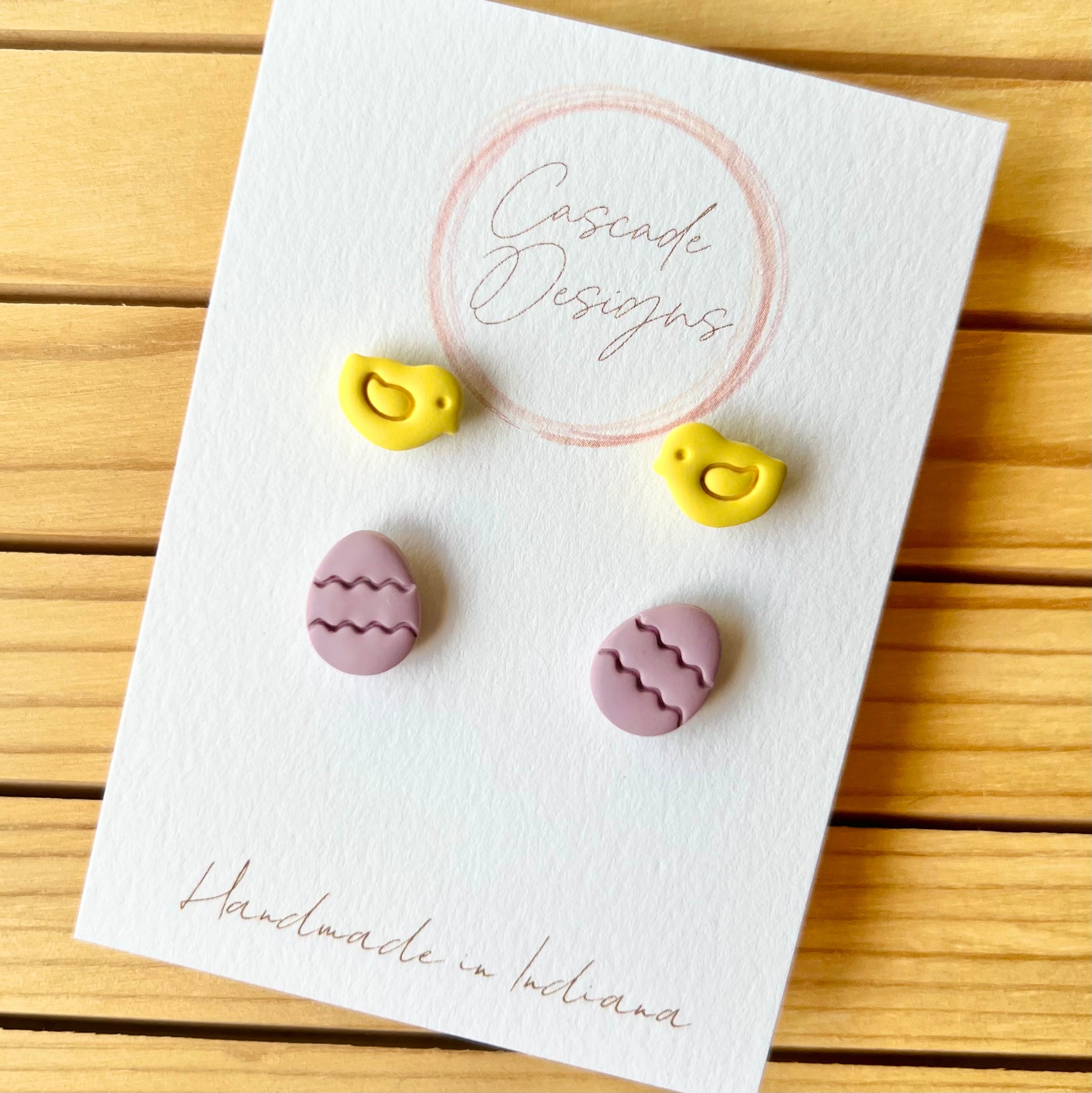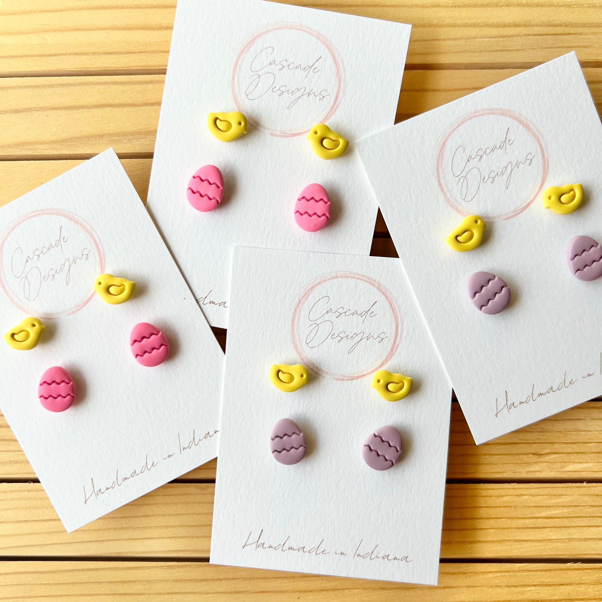 These chick and easter egg stud earrings are handmade with love and designed to accent various styles! With a super lightweight design, these earrings are easy to wear for any occasion - especially Easter! 🐣