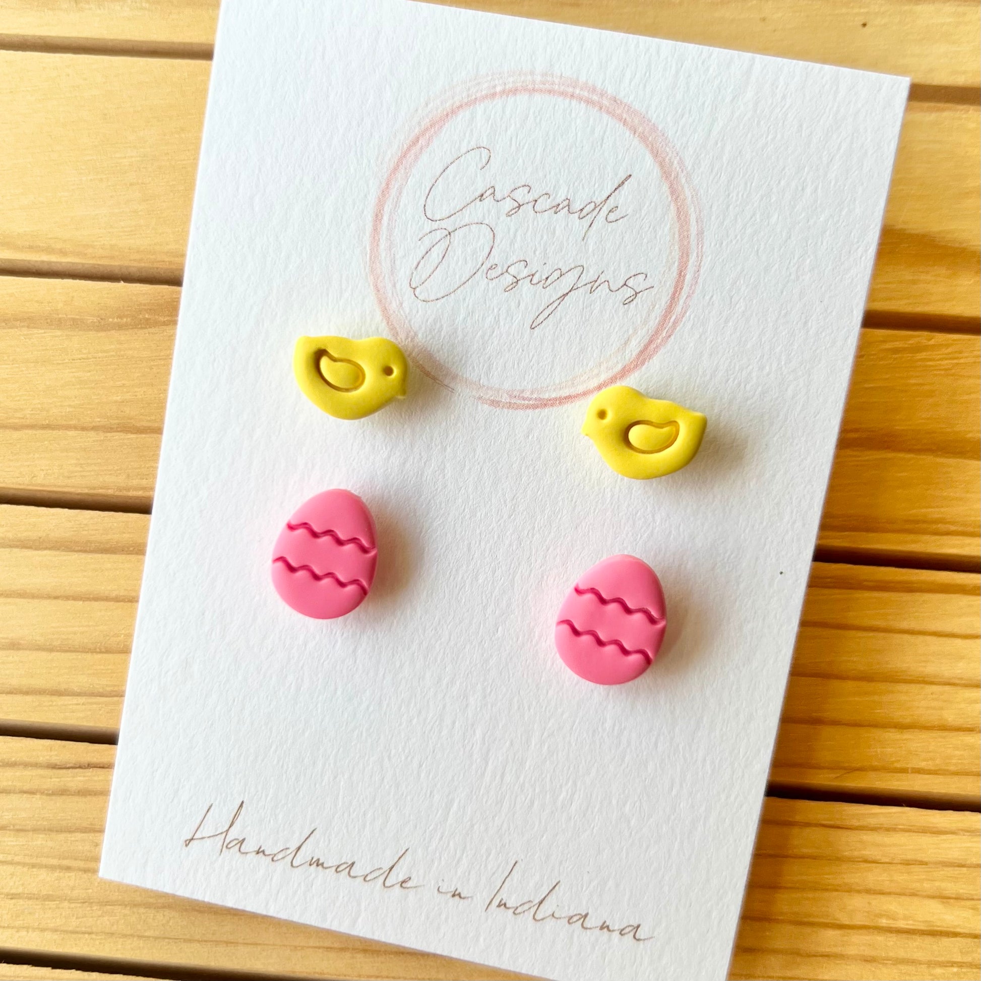 The Basket – Chick and Easter Egg Clay Stud Earrings