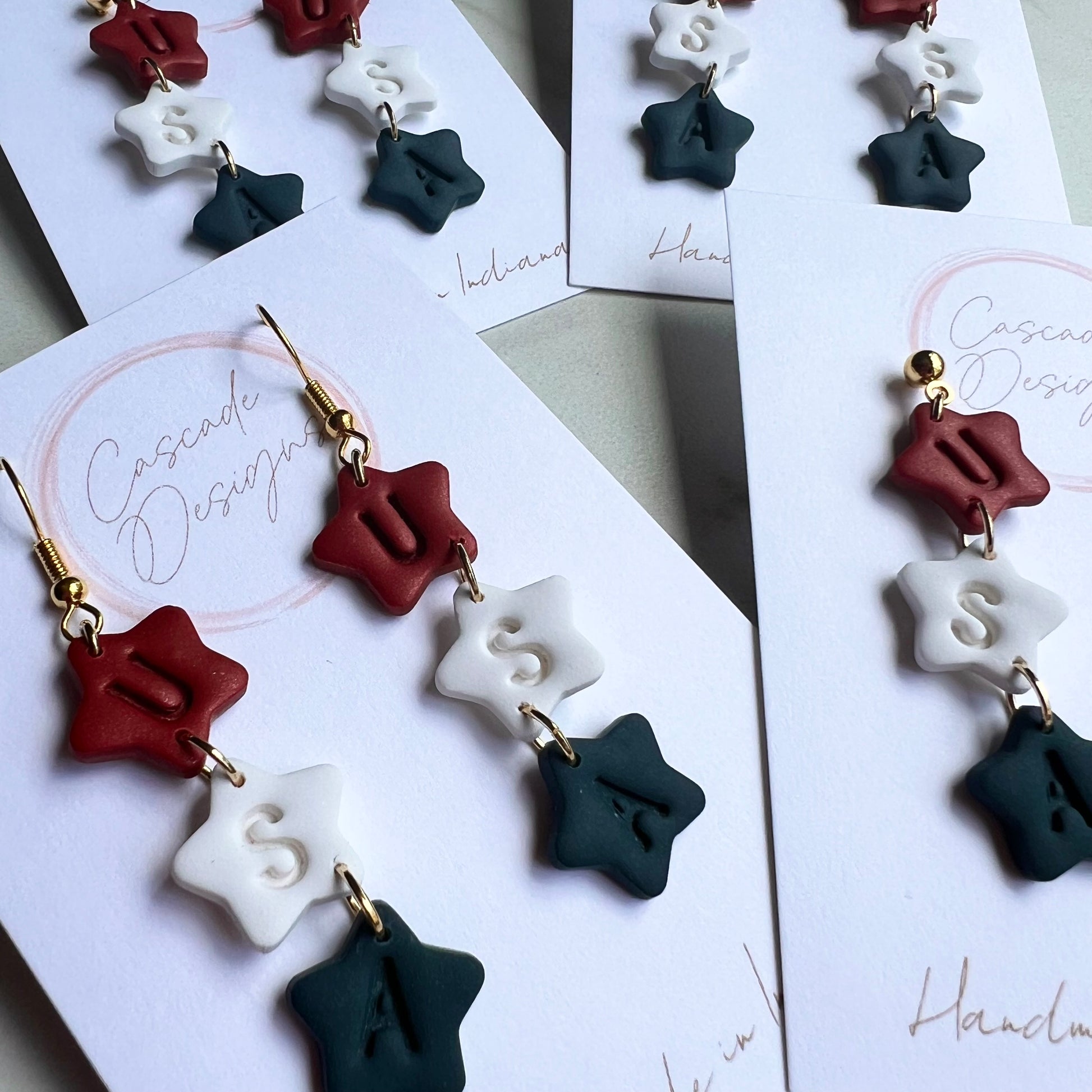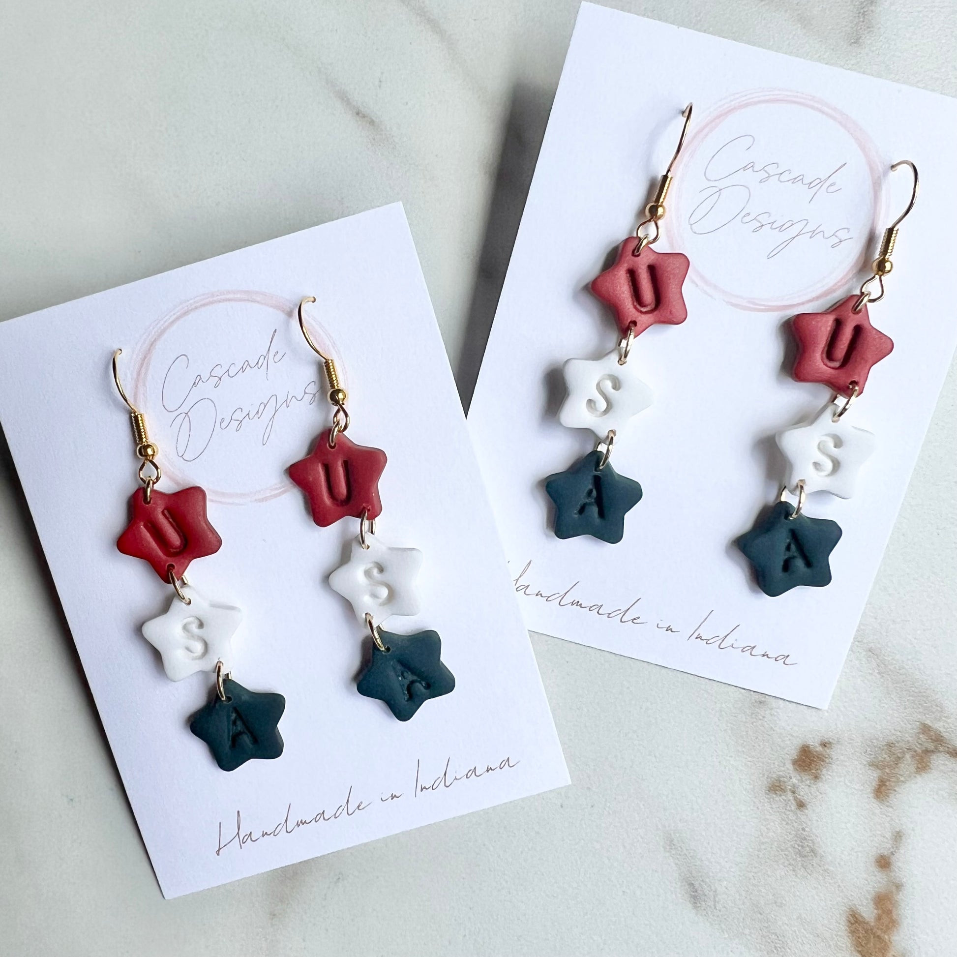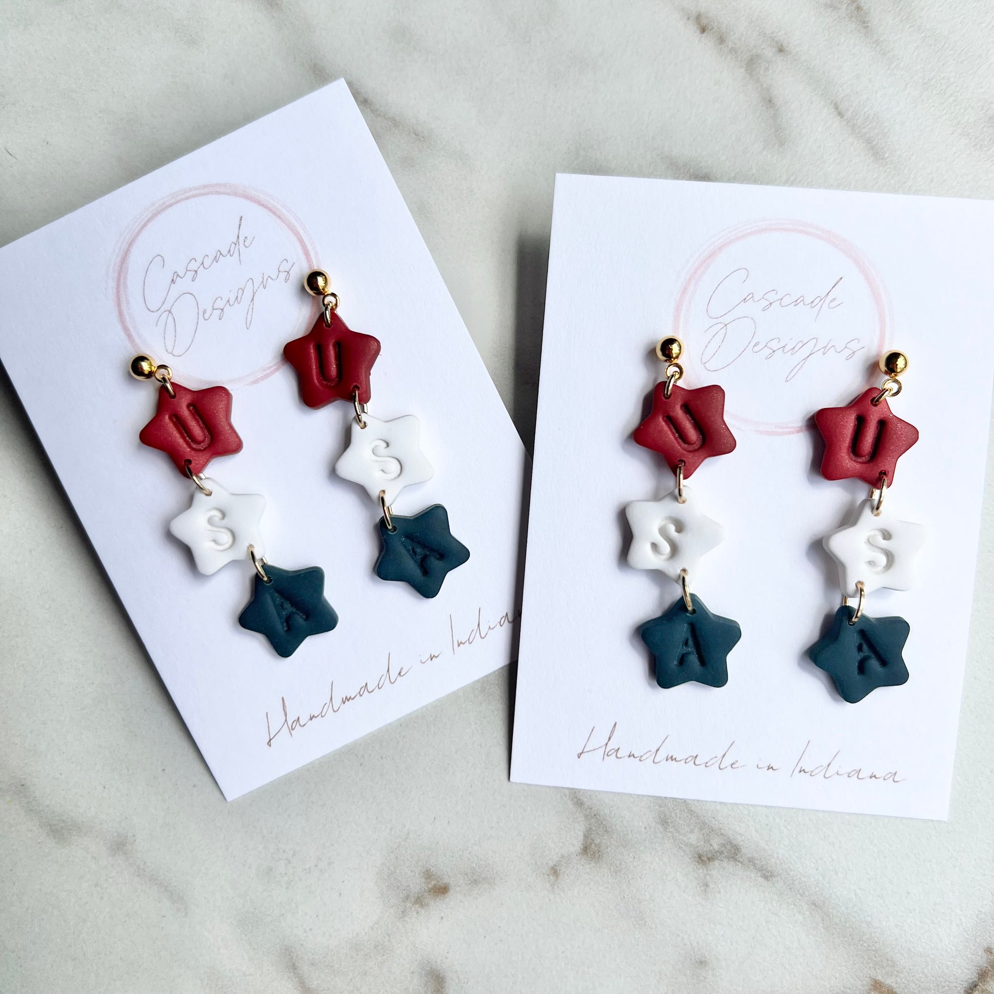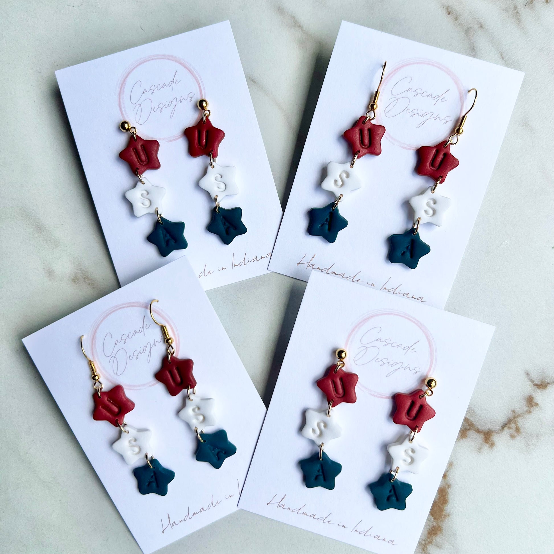 These polymer clay earrings are handmade with love and perfect for your next 4th of July party! With a super lightweight design, these earrings are easy to wear - especially during outdoor cookouts or firework shows!