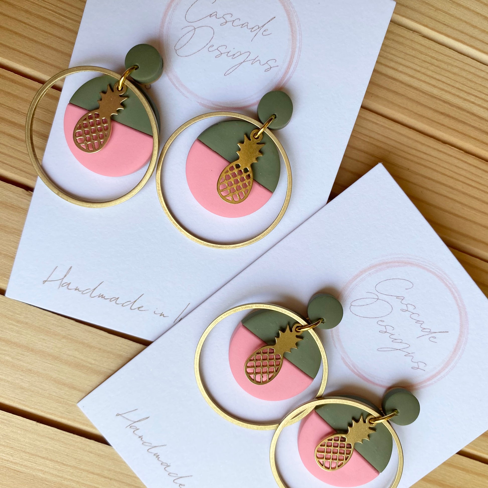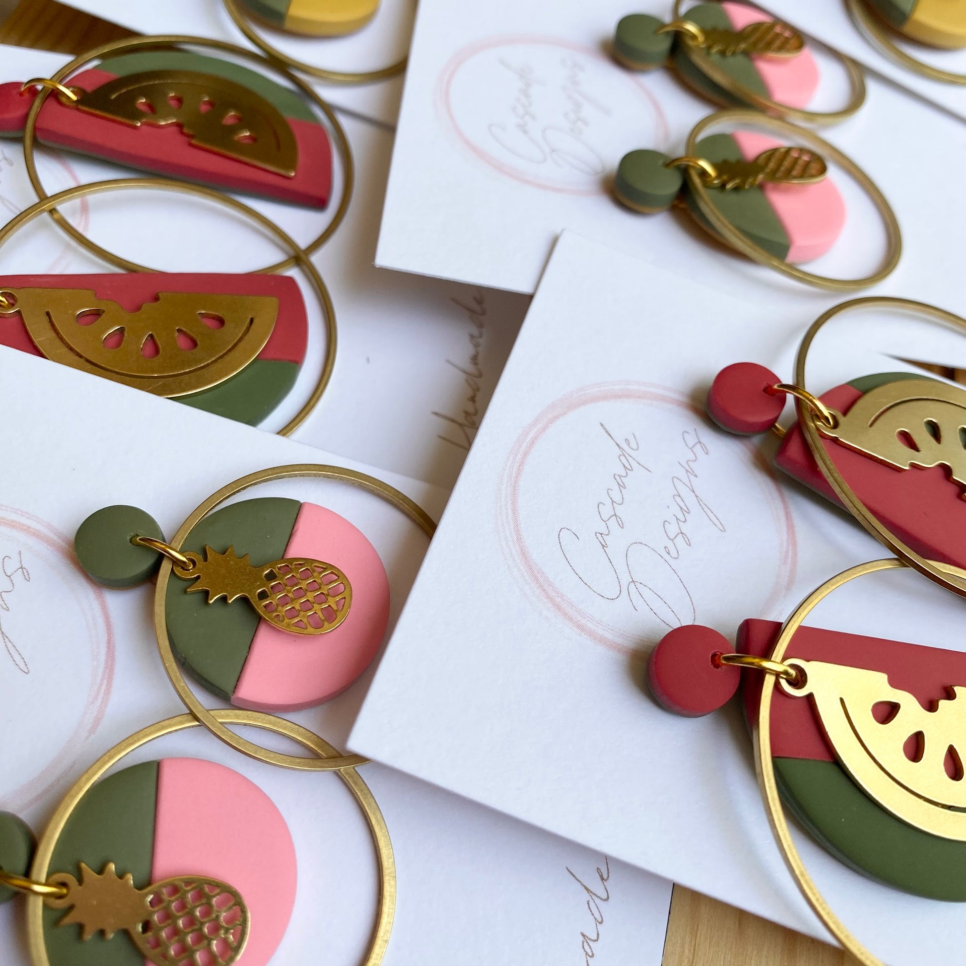 The Colada | Pineapple Color Block Hoop Clay Earrings