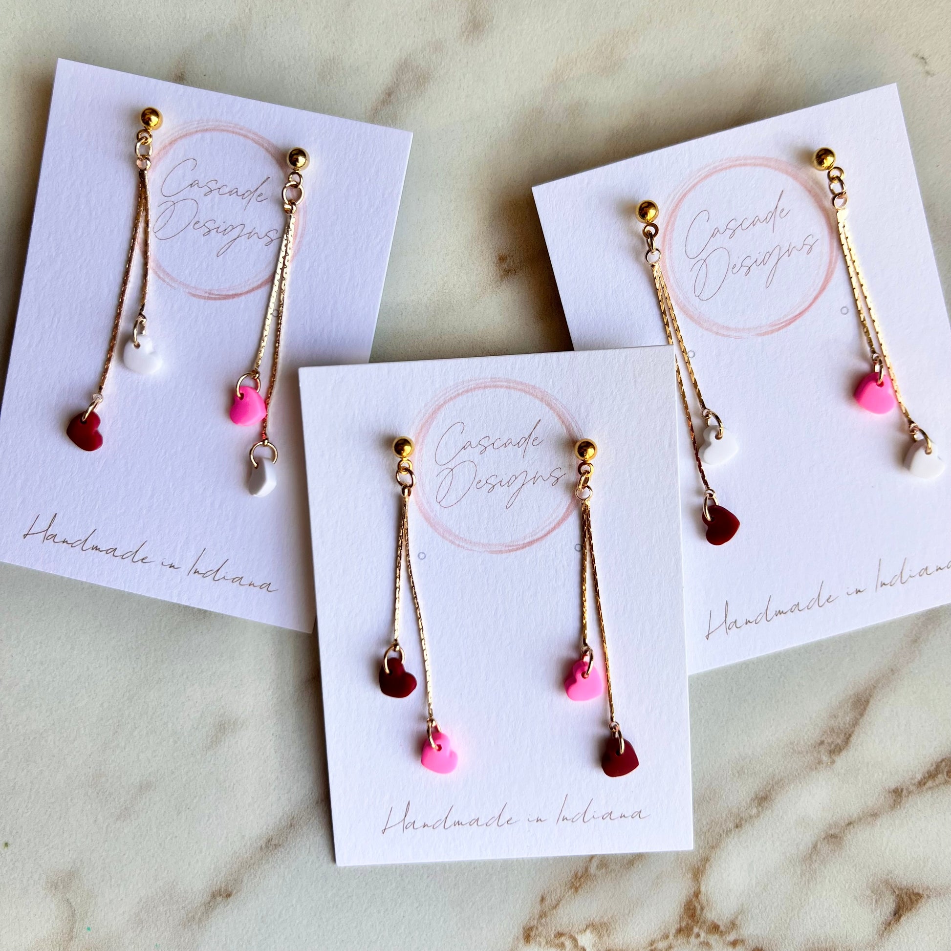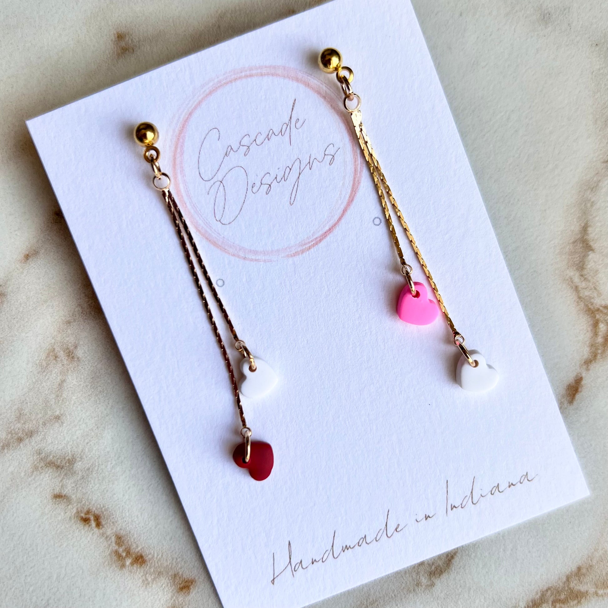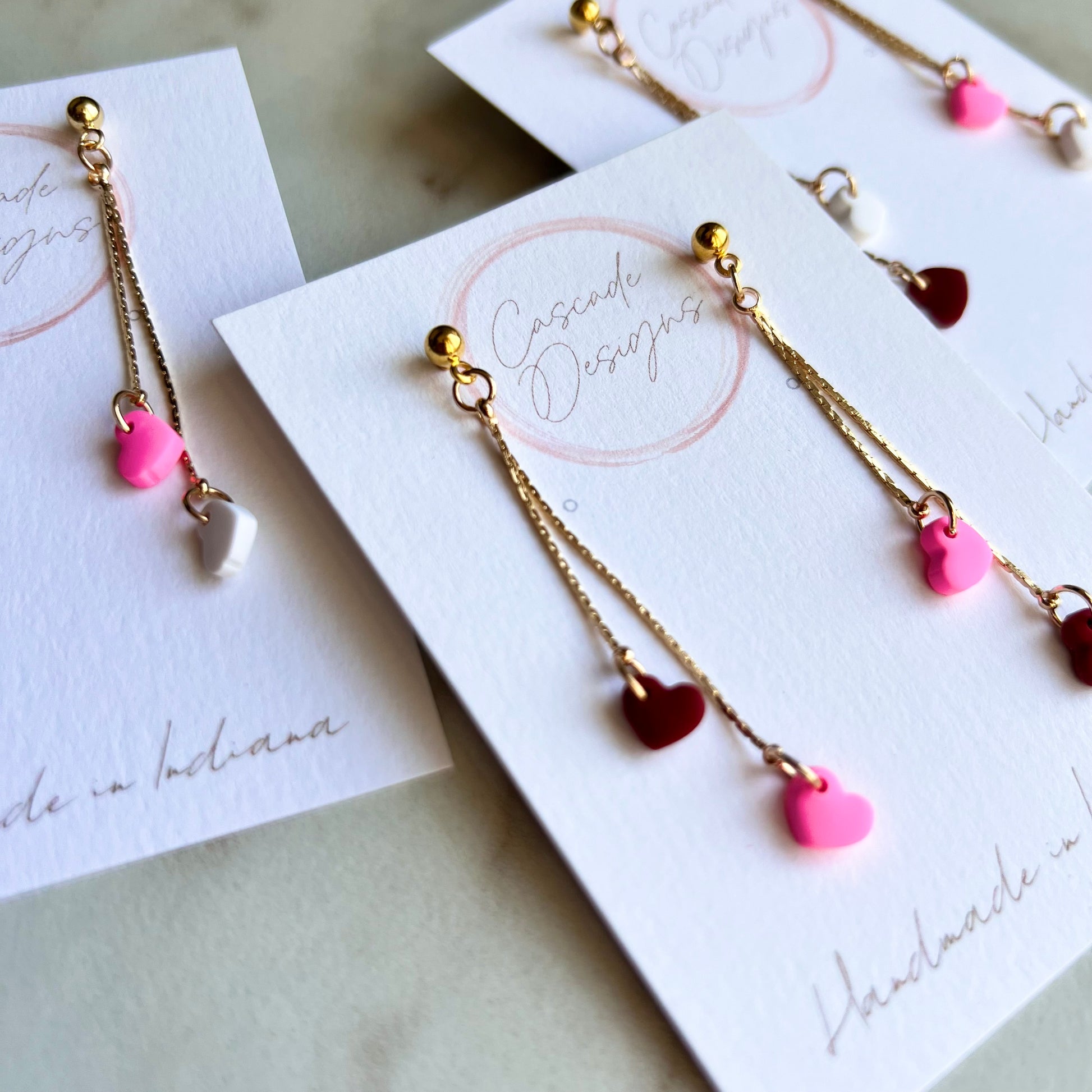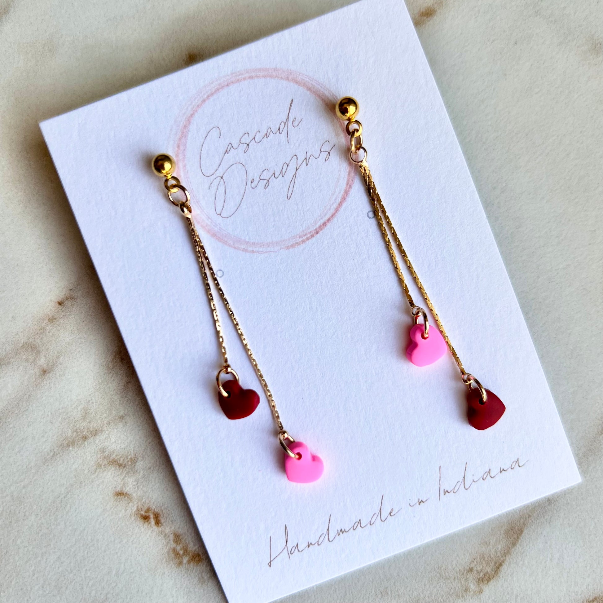 These heart chain earrings are handmade with love and designed to accent various styles! With a super lightweight design, these earrings are easy to wear for any occasion - especially for Valentine's Day <3