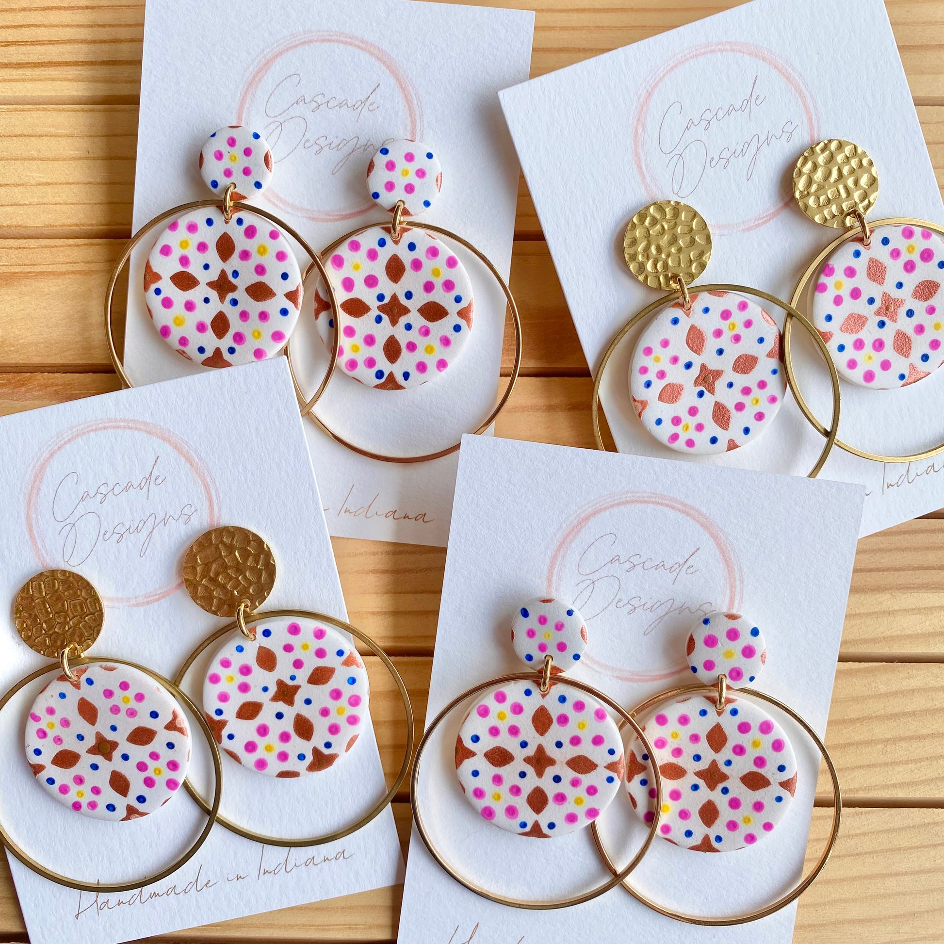 The Esmeralda | Moroccan Hoop and Rectangle Clay Earrings