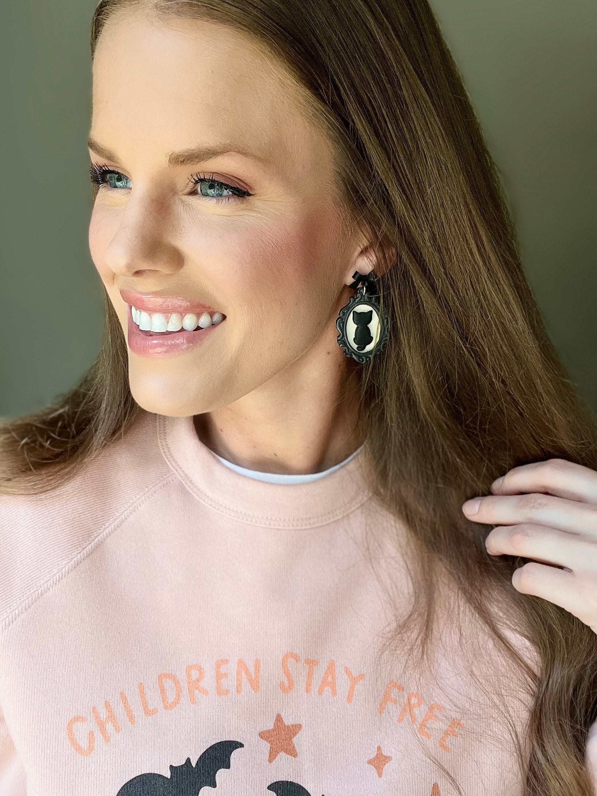 These spooky earrings are handmade with love and designed to accent various styles! With a super lightweight design, these earrings are easy to wear for any occasion.