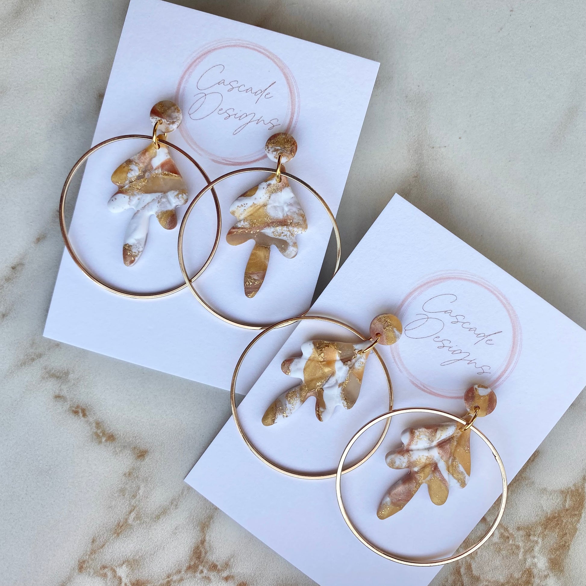 These shimmering polymer clay earrings are handmade with love and designed to accent various styles. With a super lightweight design, these earrings are easy to wear for any occasion.