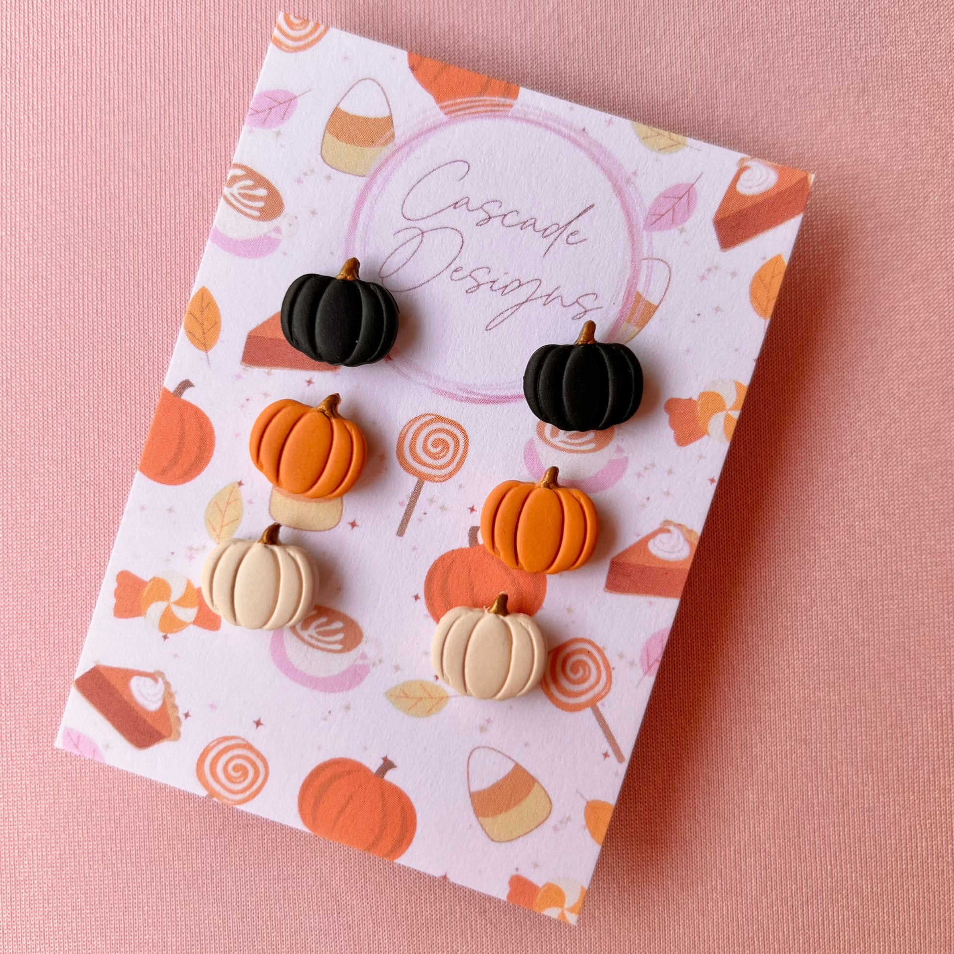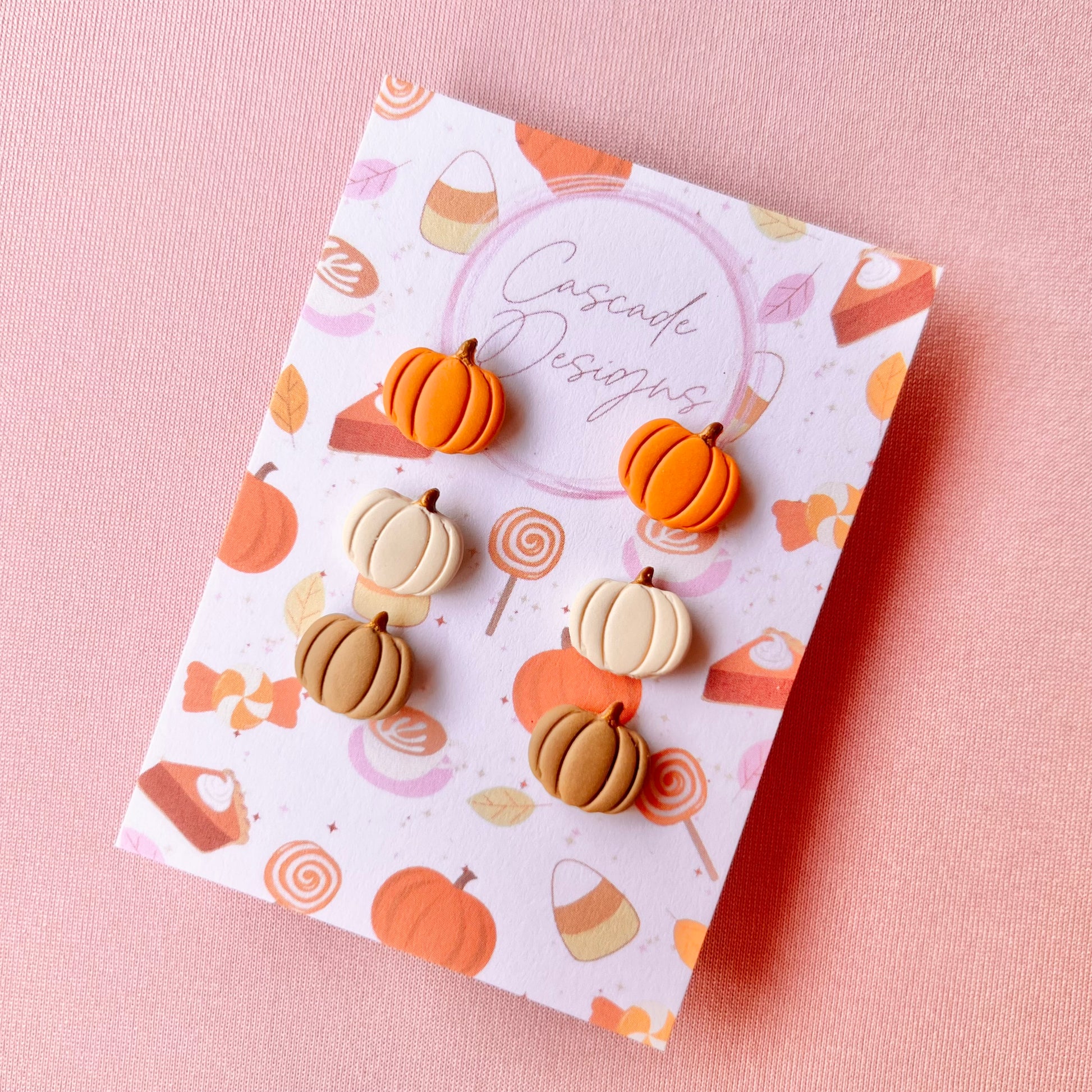 The Punkin Trio | Assorted Mini Pumpkin Clay Earring Studs - Set of 3