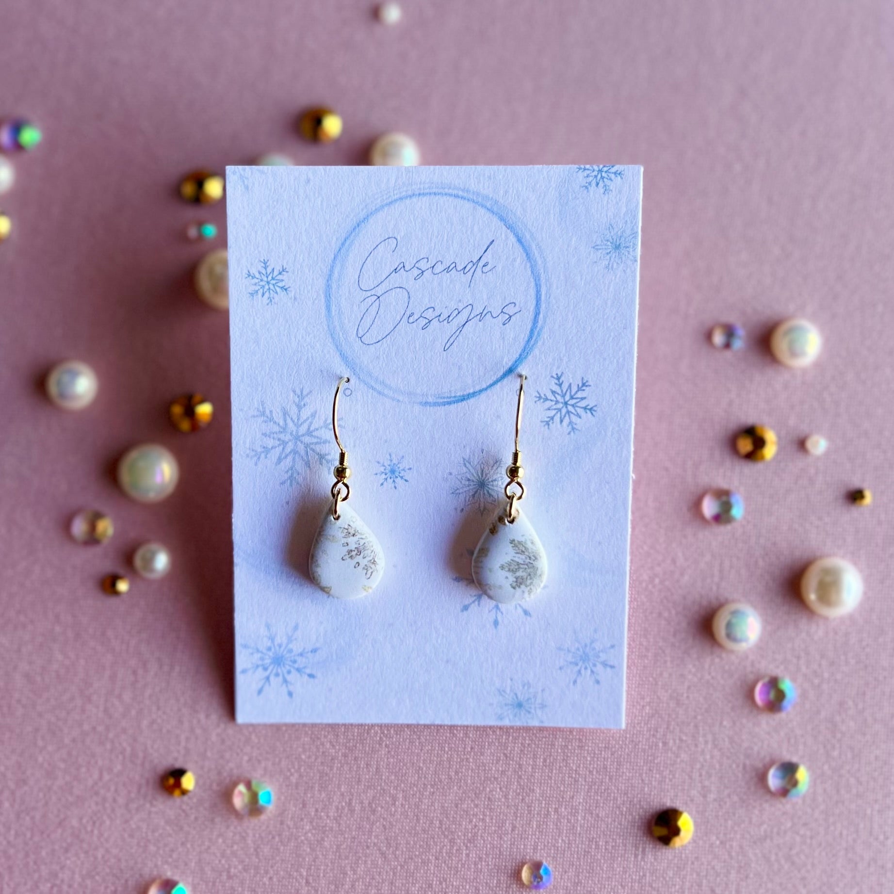 The Icicle | Snowflake Patterned Teardrop Clay Earrings