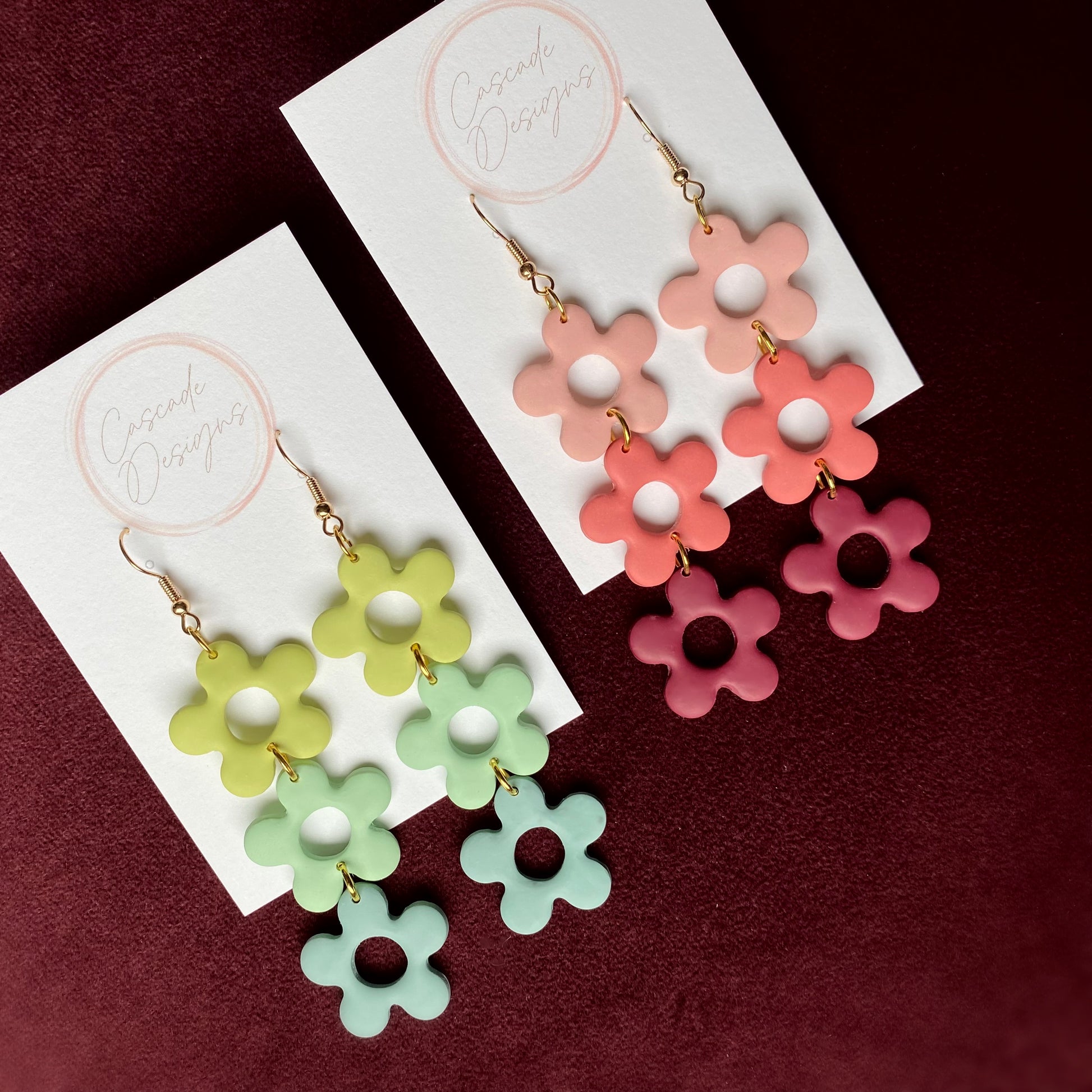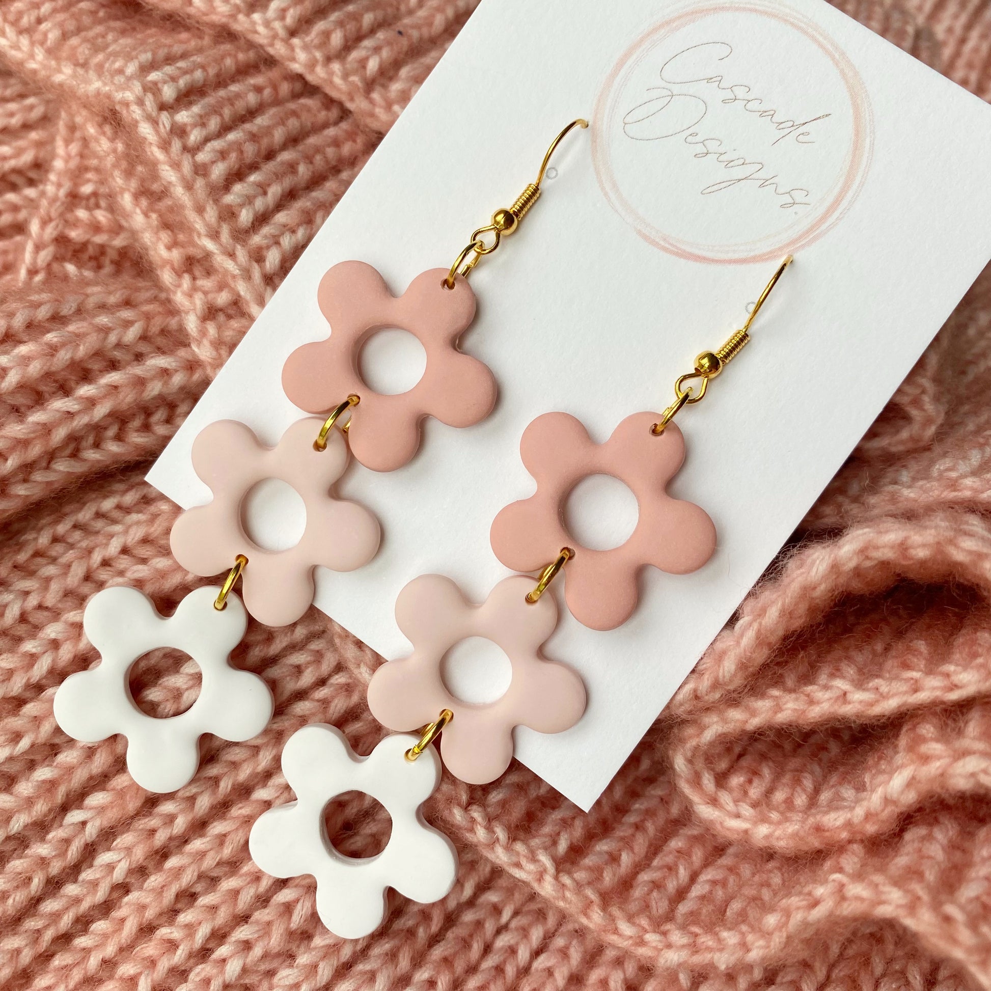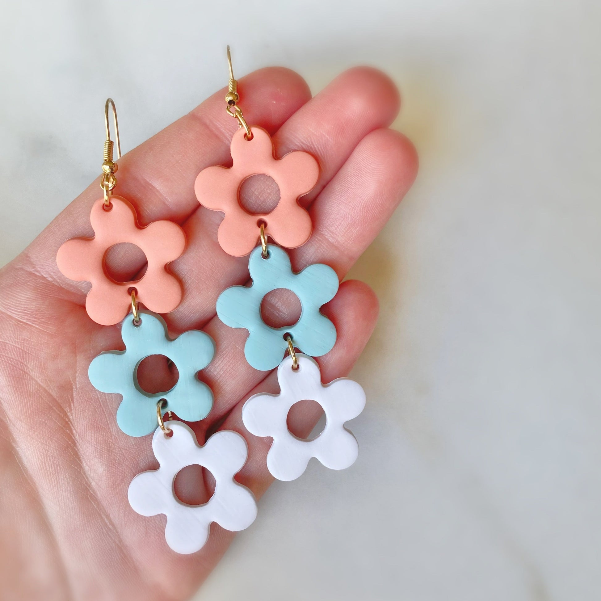 Harness the flower power! These triple-tiered flower polymer clay earrings are handmade with love. With a super lightweight design, they are easy to wear for any occasion.