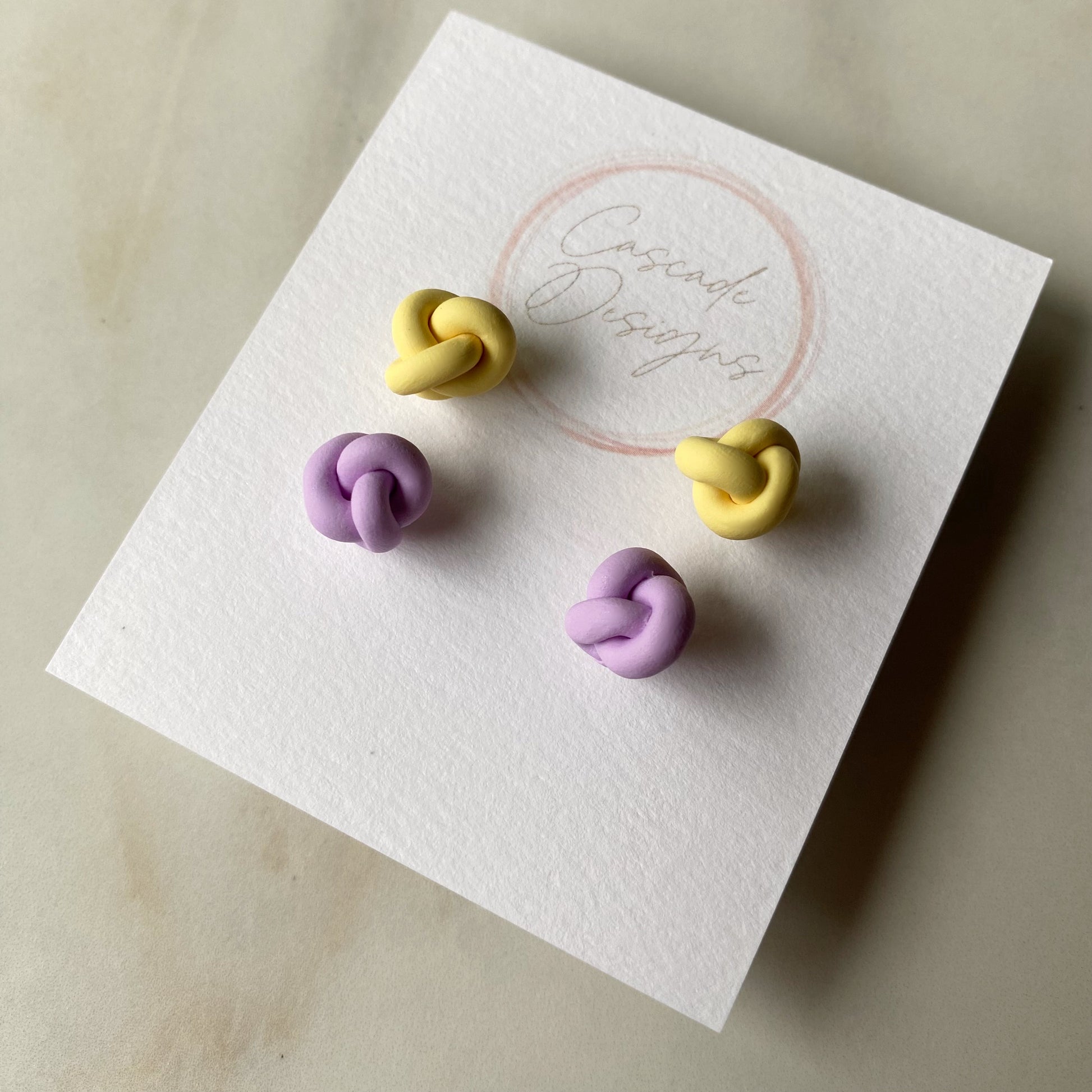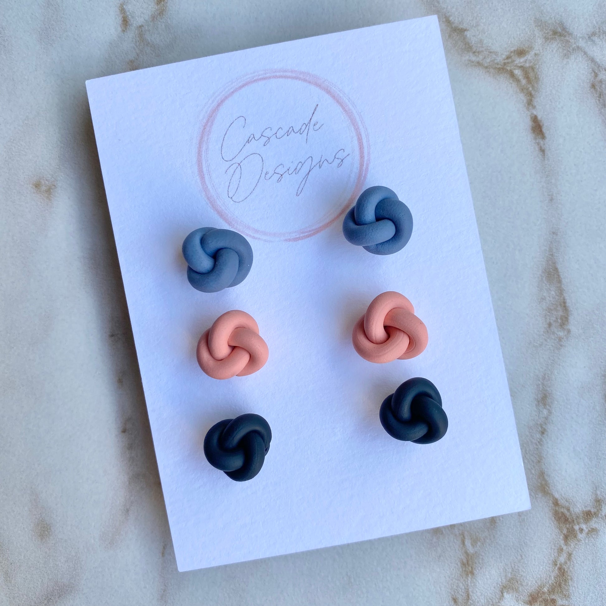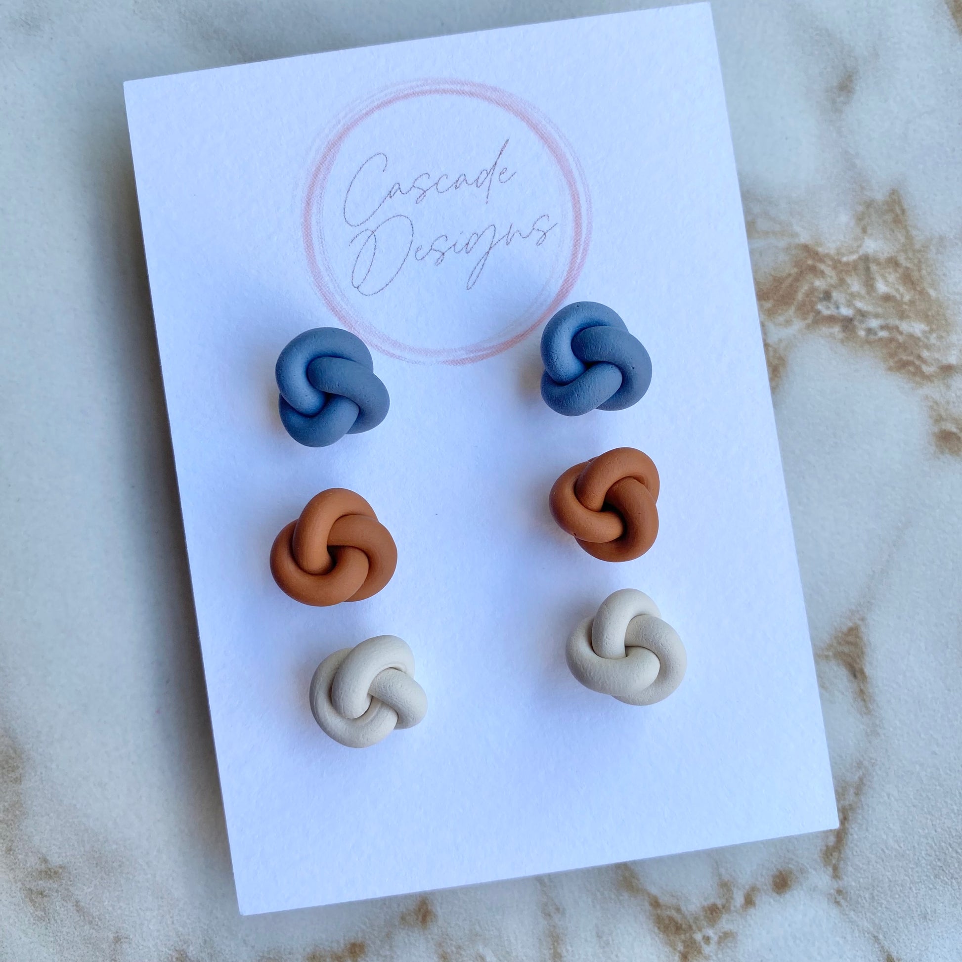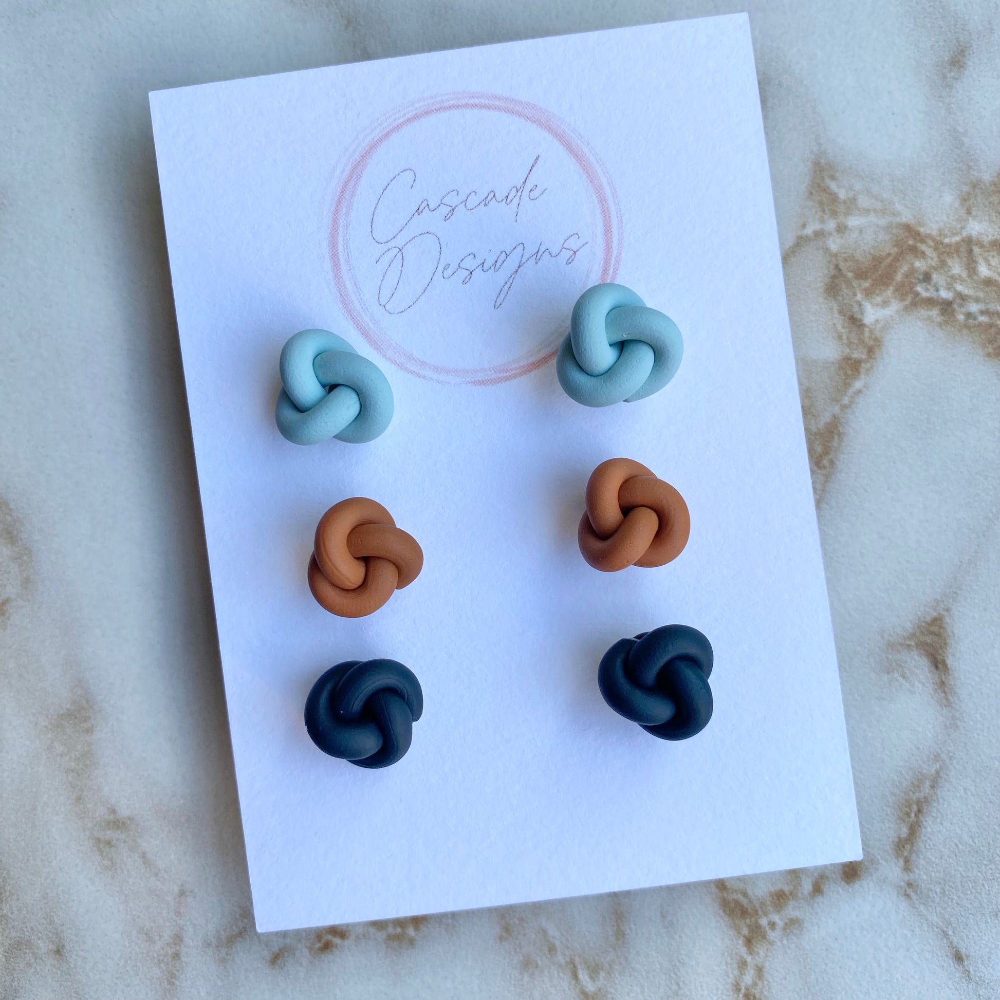 These knot-shaped polymer clay earrings are handmade with love. With a super lightweight nautical design, these earrings are easy to wear for any occasion.