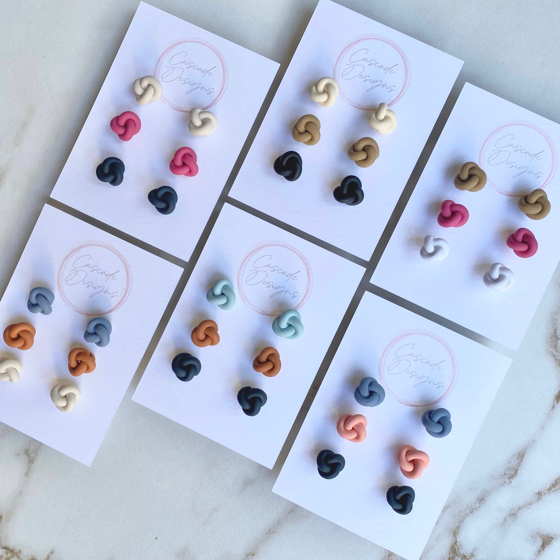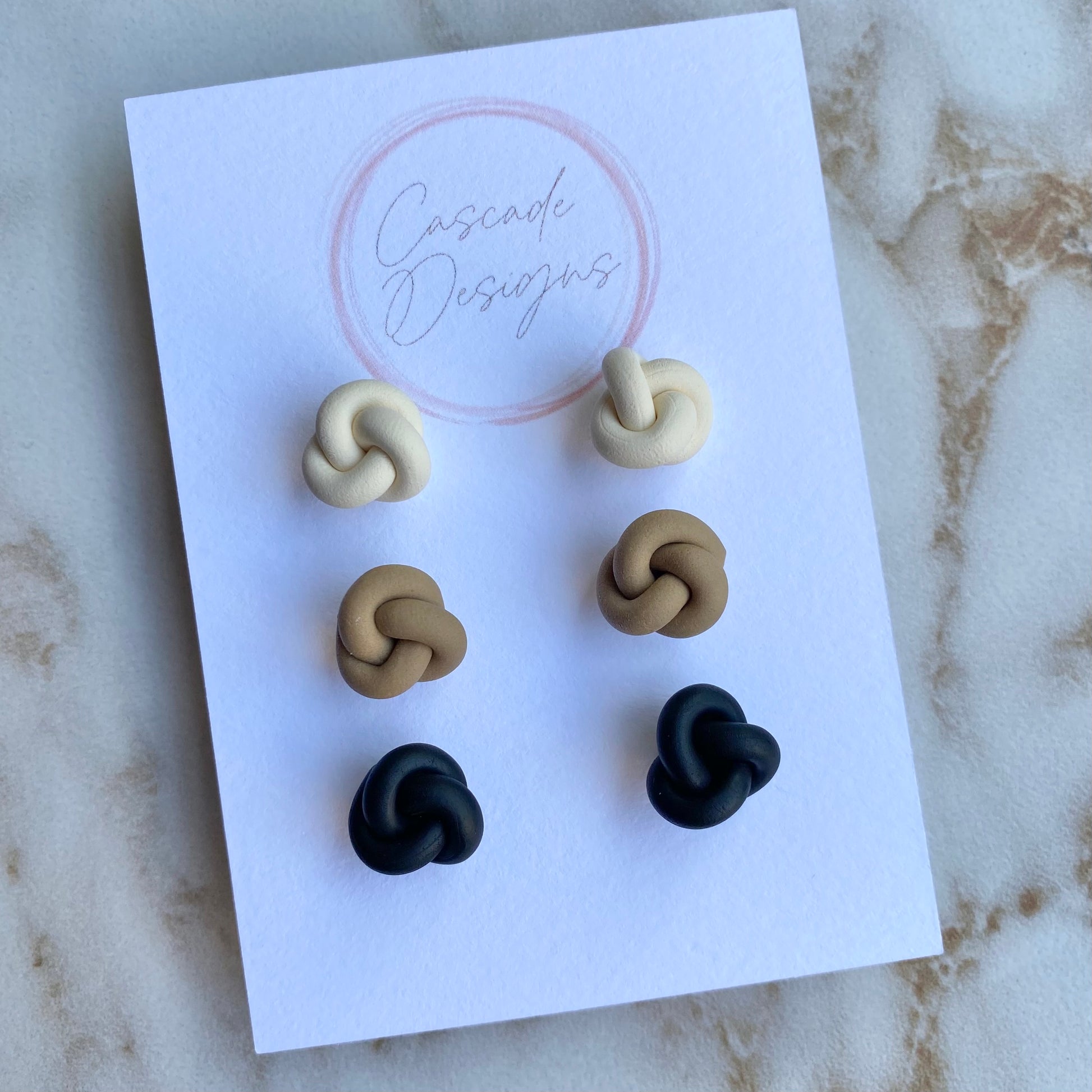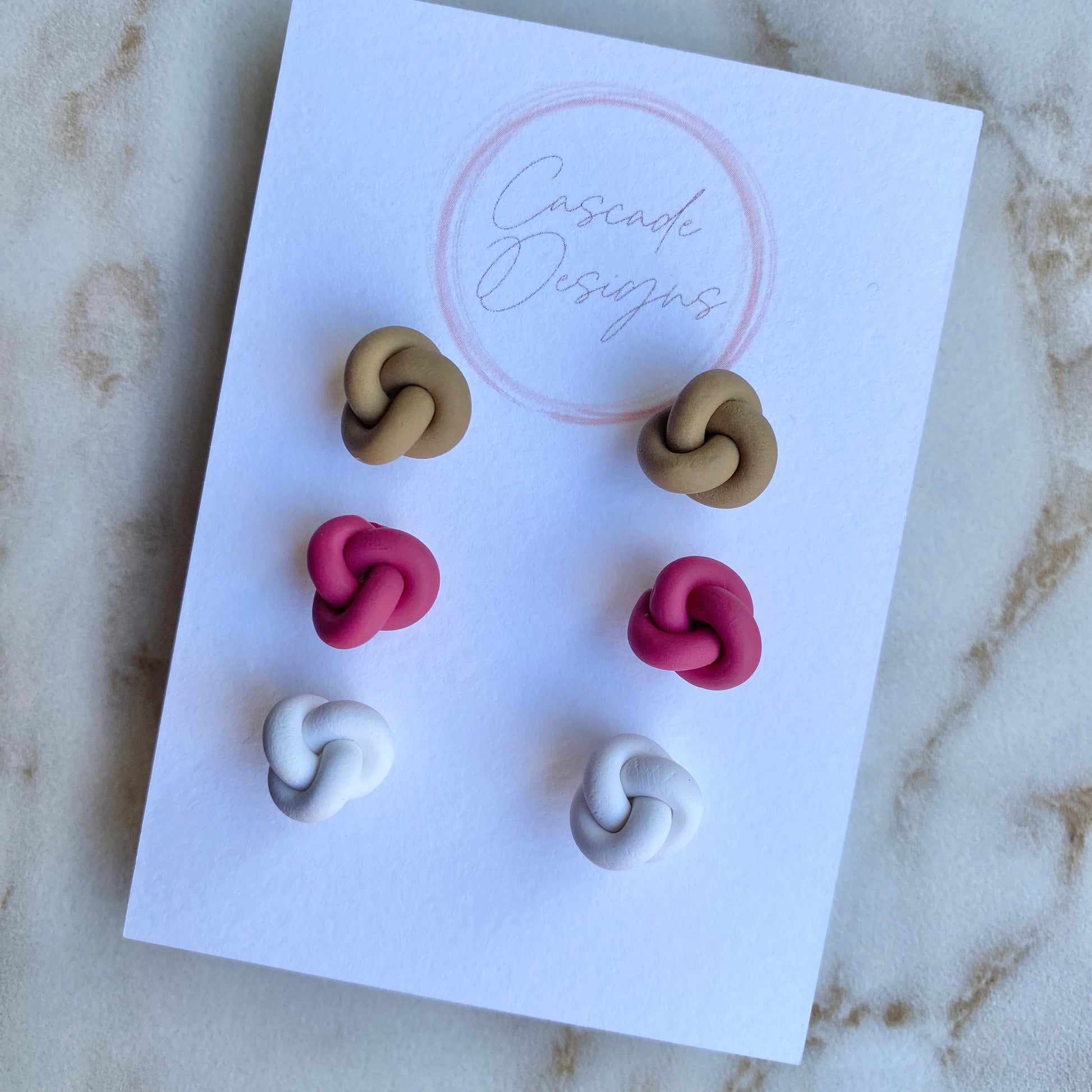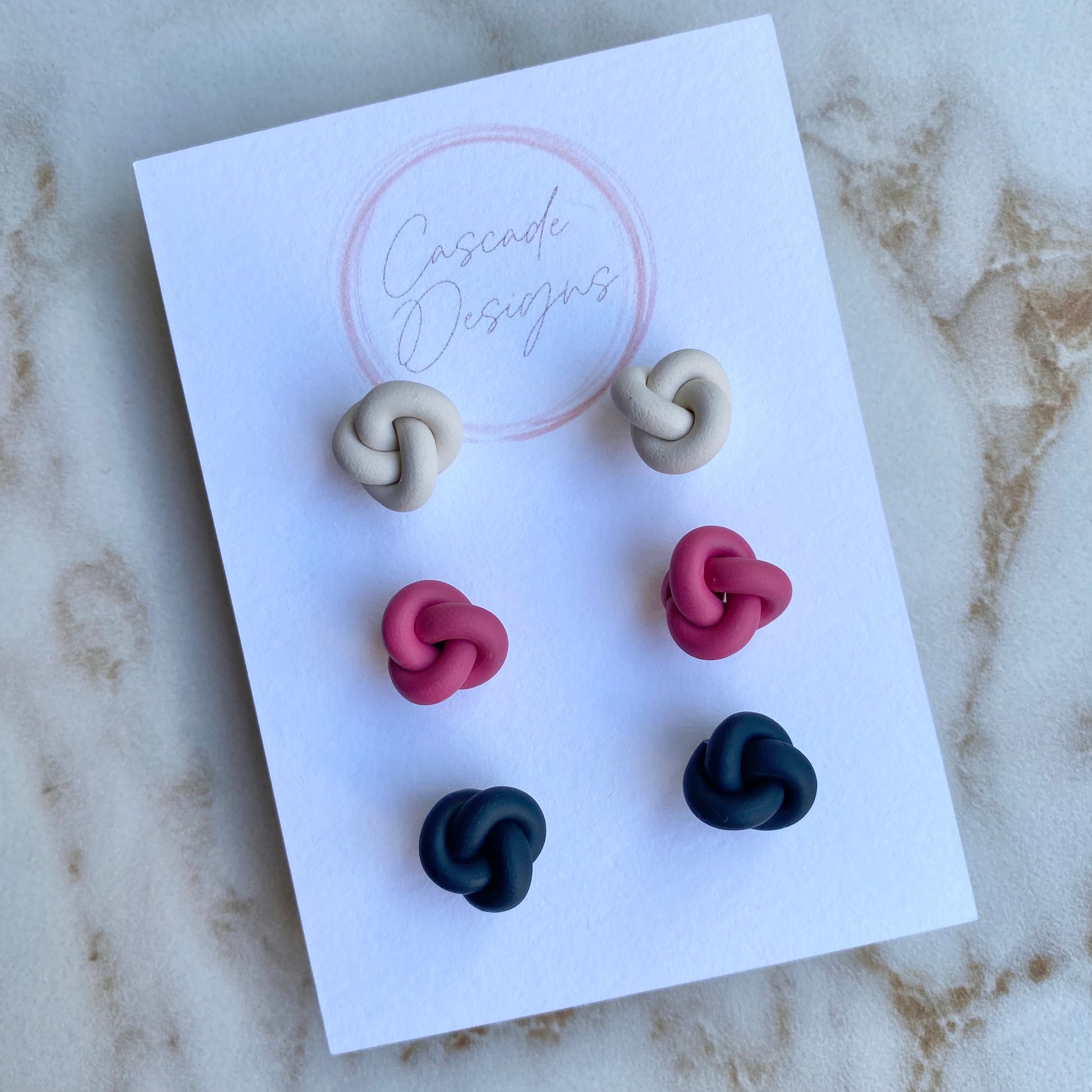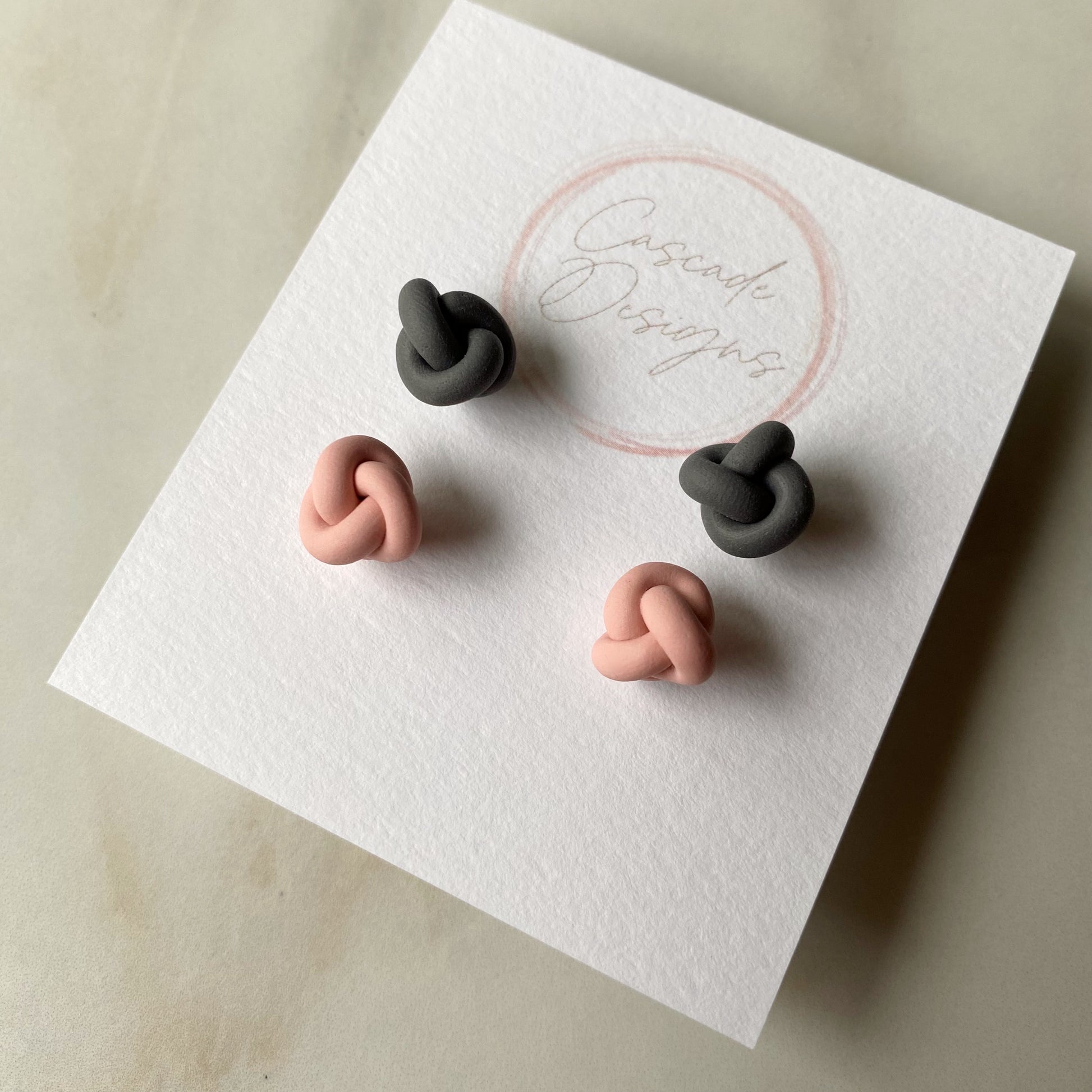 These knot-shaped polymer clay earrings are handmade with love. With a super lightweight nautical design, these earrings are easy to wear for any occasion.