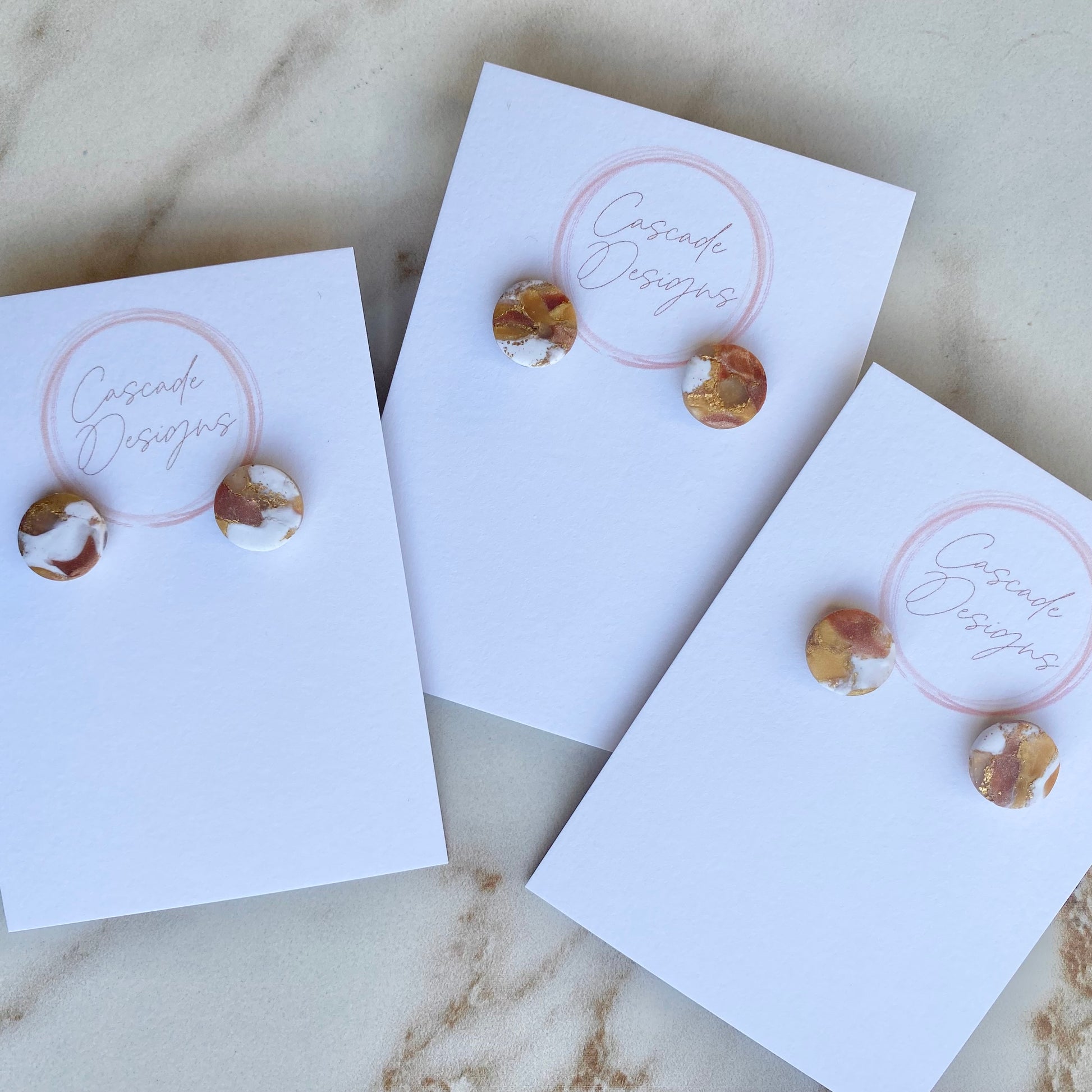 These shimmering polymer clay studs are handmade with love and designed to accent various styles. With a super lightweight design, these earrings are easy to wear for any occasion.