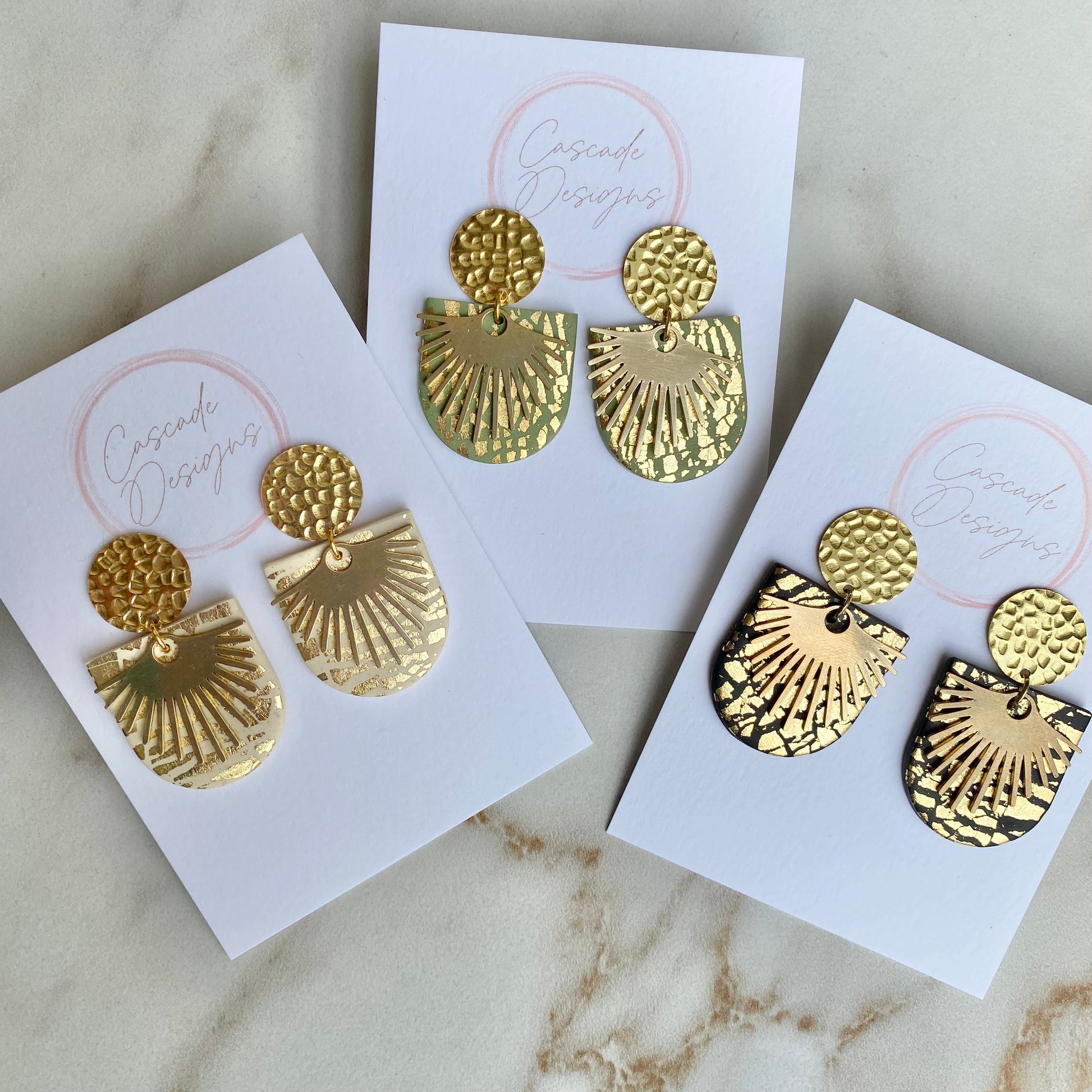 These shimmering gold flake earrings are handmade with love! With a super lightweight design, these earrings are easy to wear for any occasion. Our collections are handcrafted so actual pieces may have slight variations from the displays pictured.
