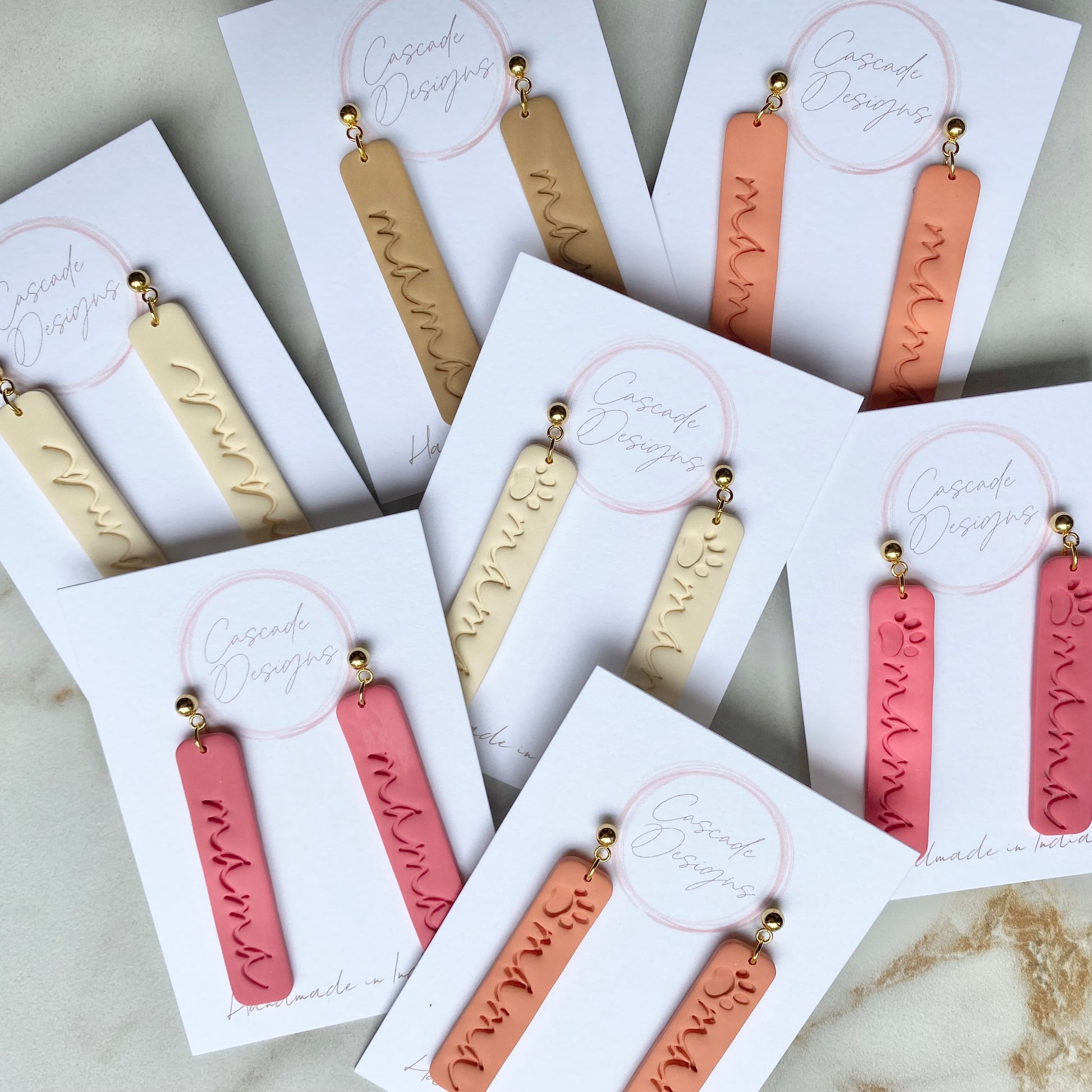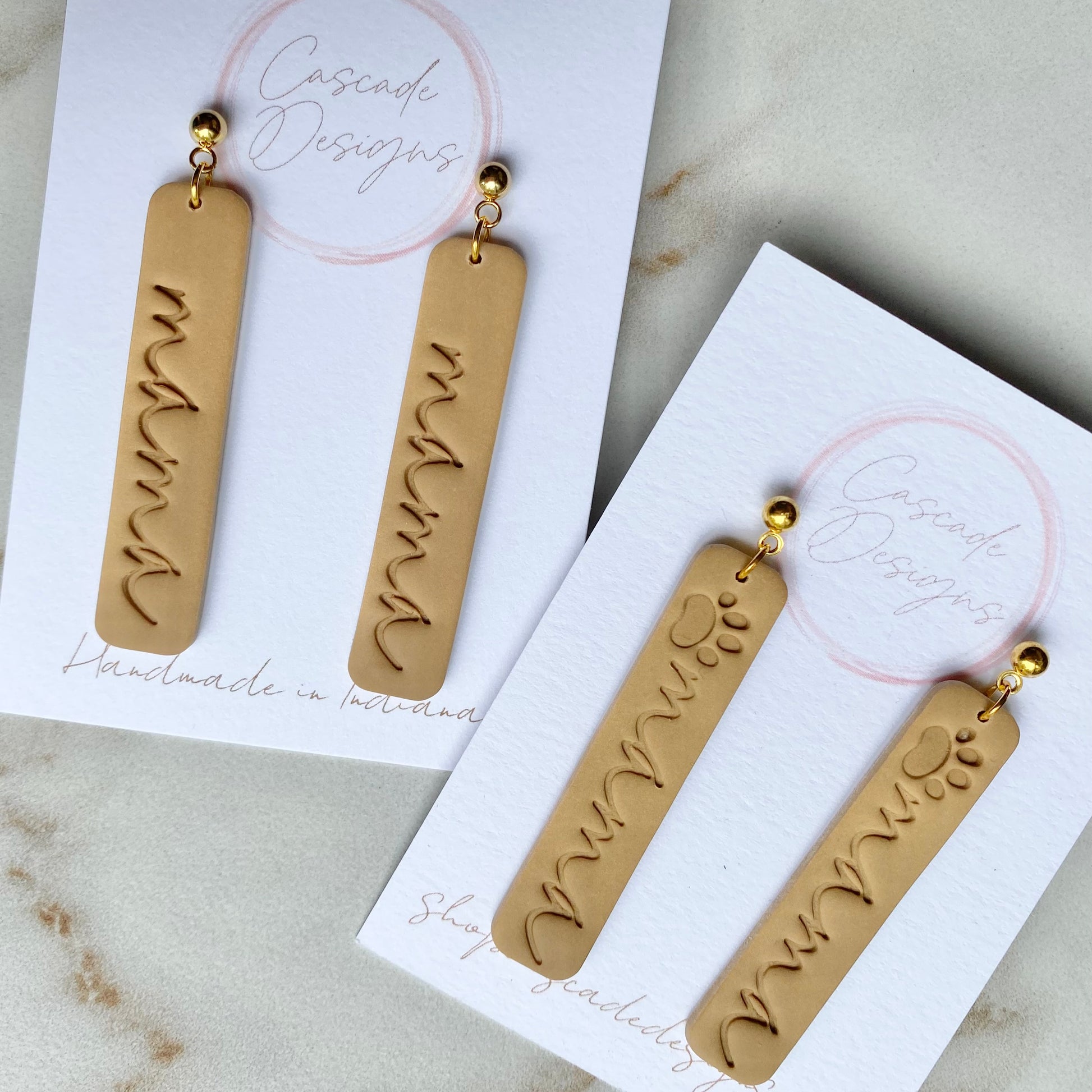 These mama, dog mama, and pawprint earrings are handmade with love and designed to accent various styles for mamas and dog mamas! With a super lightweight design, these earrings are easy to wear for any occasion.