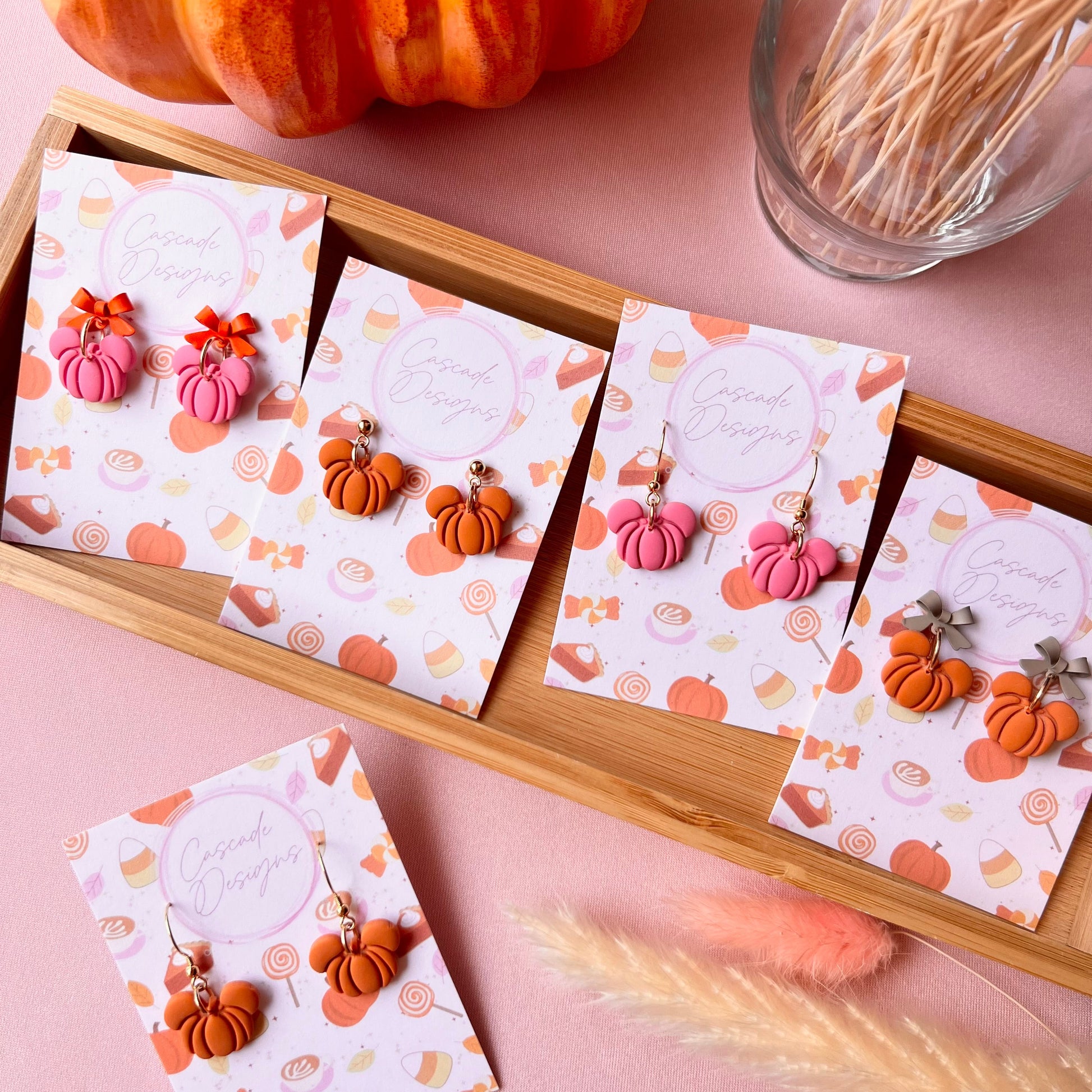 These magical pumpkin earrings with ears are handmade with love. With a super lightweight design, these earrings are easy to wear for any occasion.