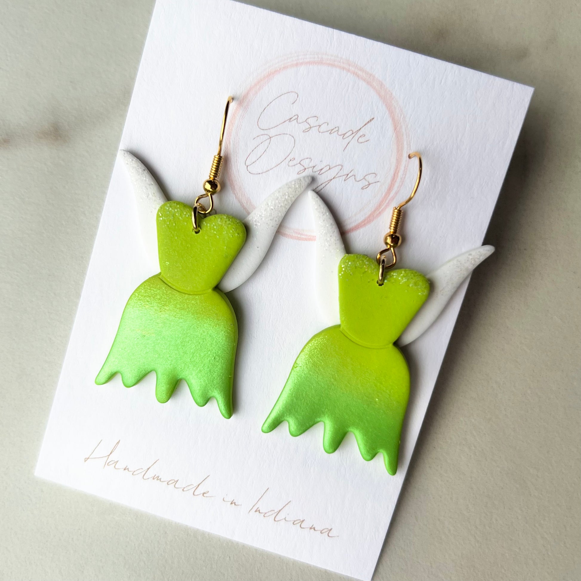 All items should be handled with care. Limit your earrings contact to water, lotions, oils, and hairspray. To clean, gently wipe with a damp cloth.