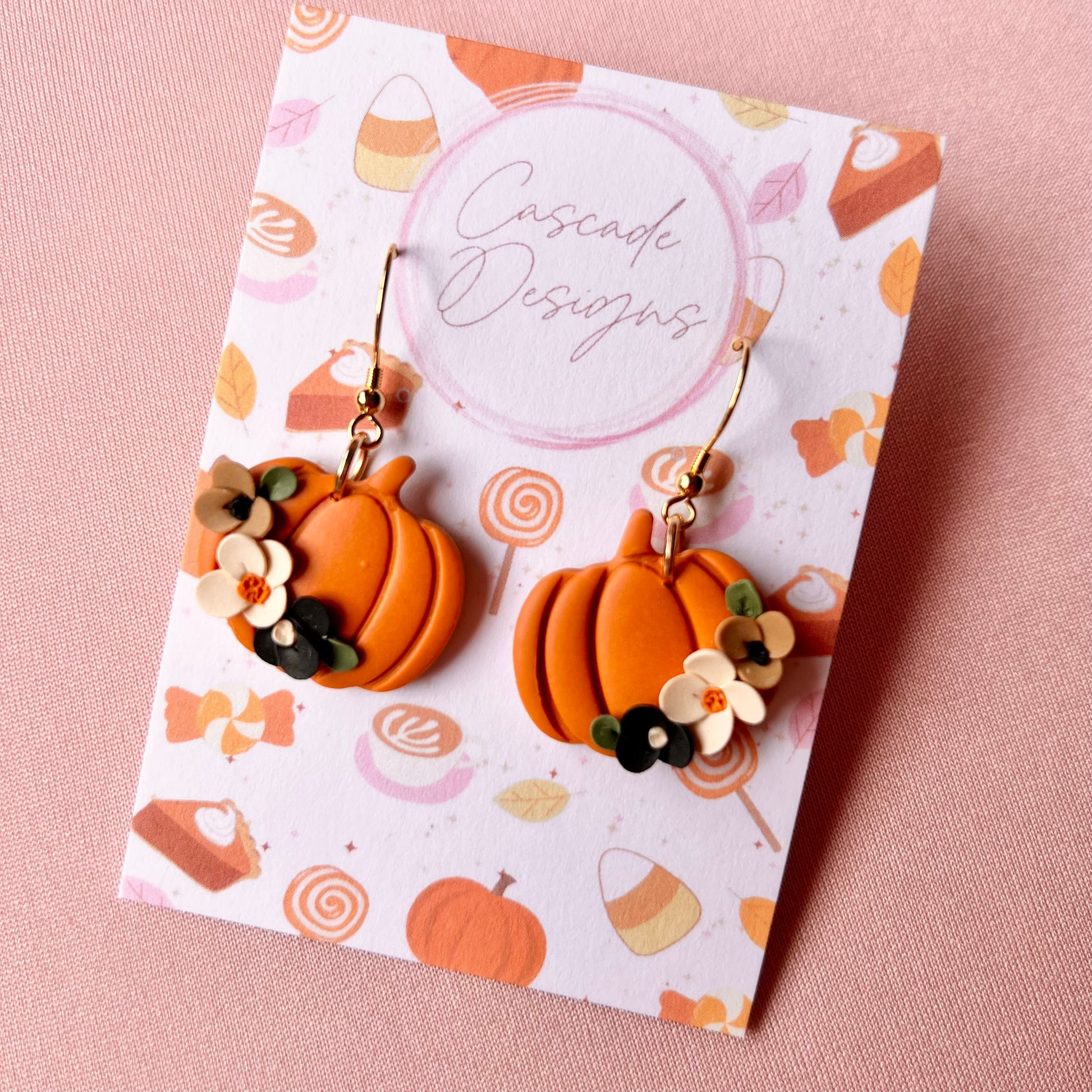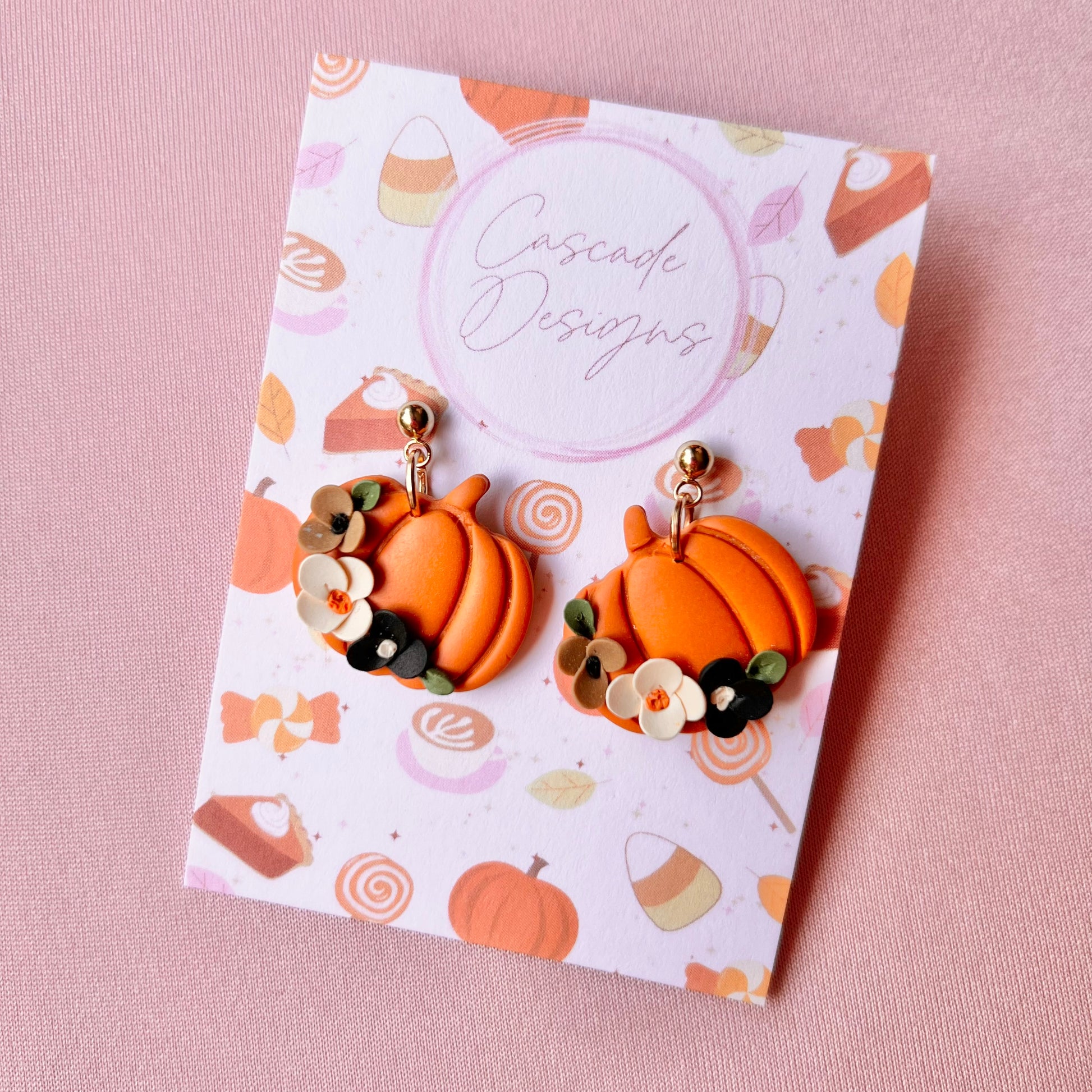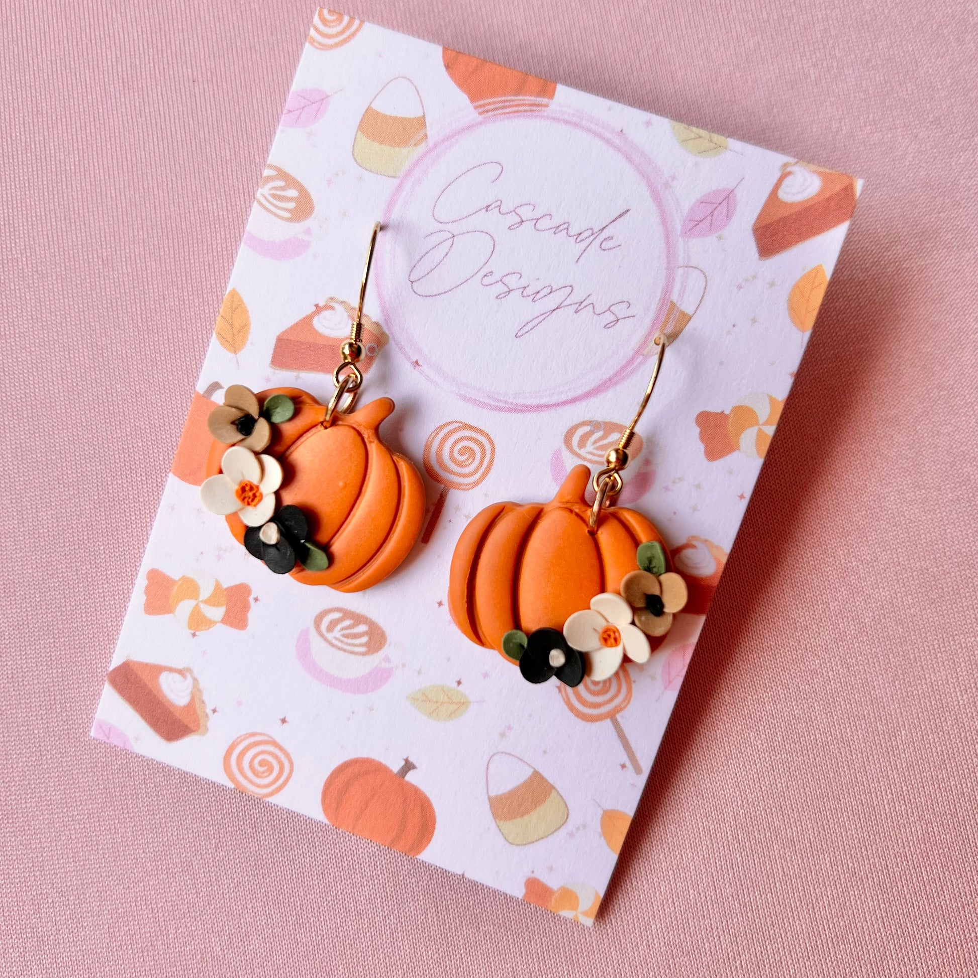 These floral-accented pumpkin earrings are handmade with love and designed to accent various styles! With a super lightweight design, these earrings are easy to wear for any occasion.