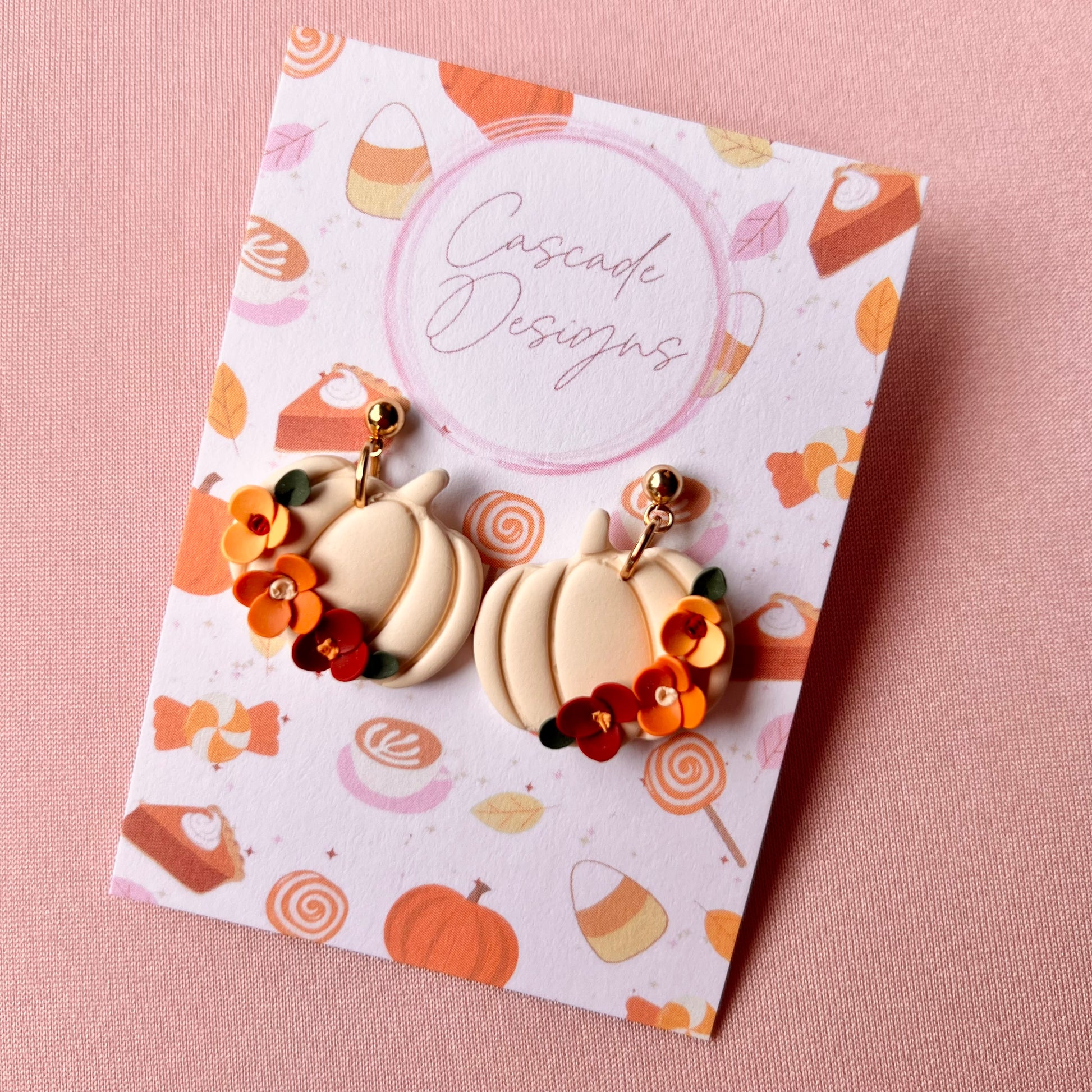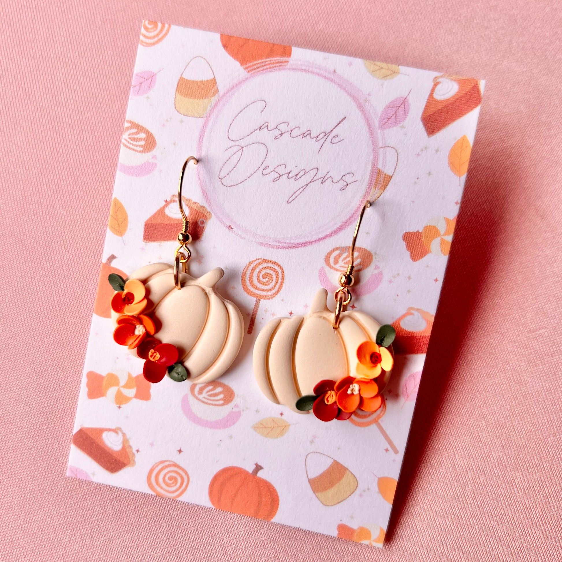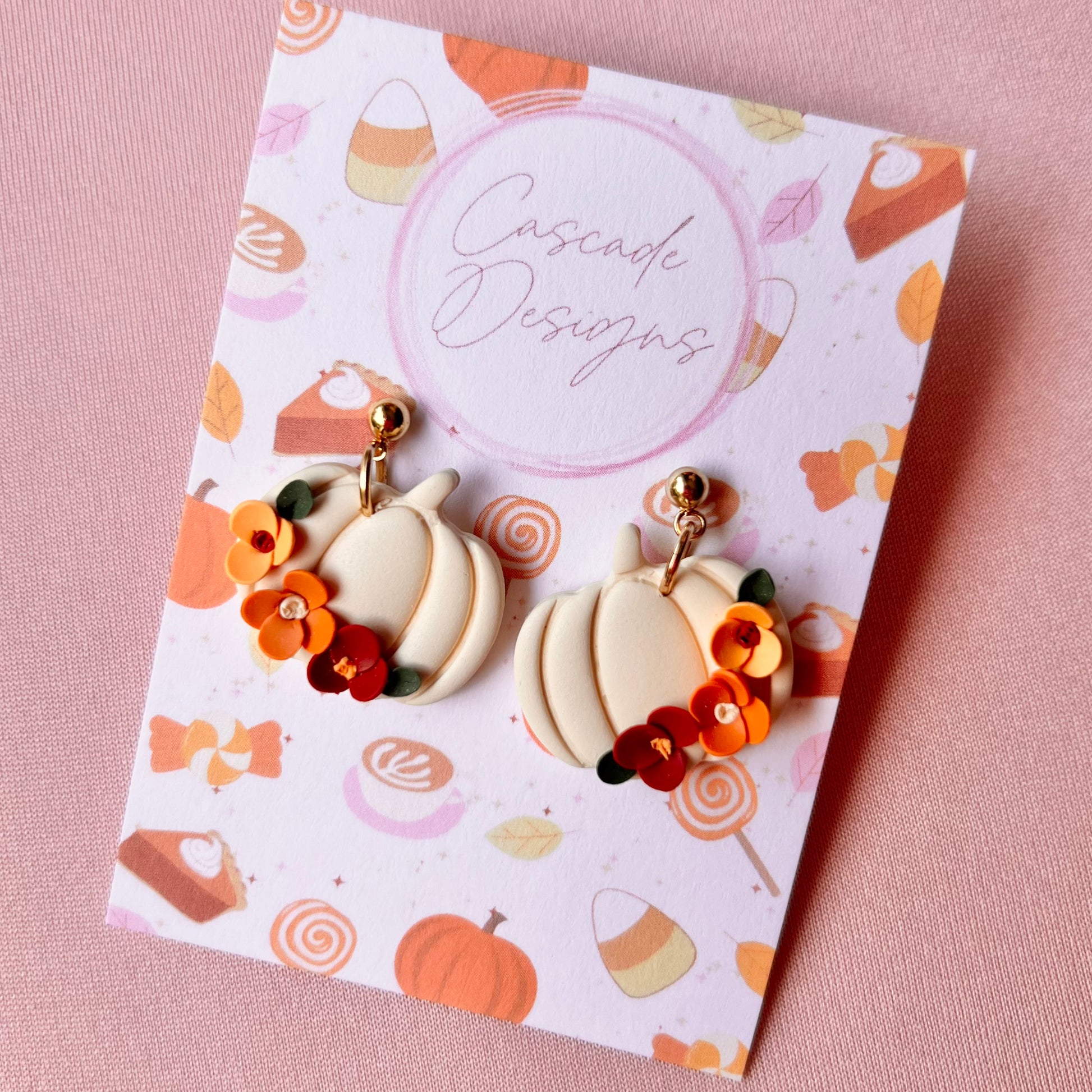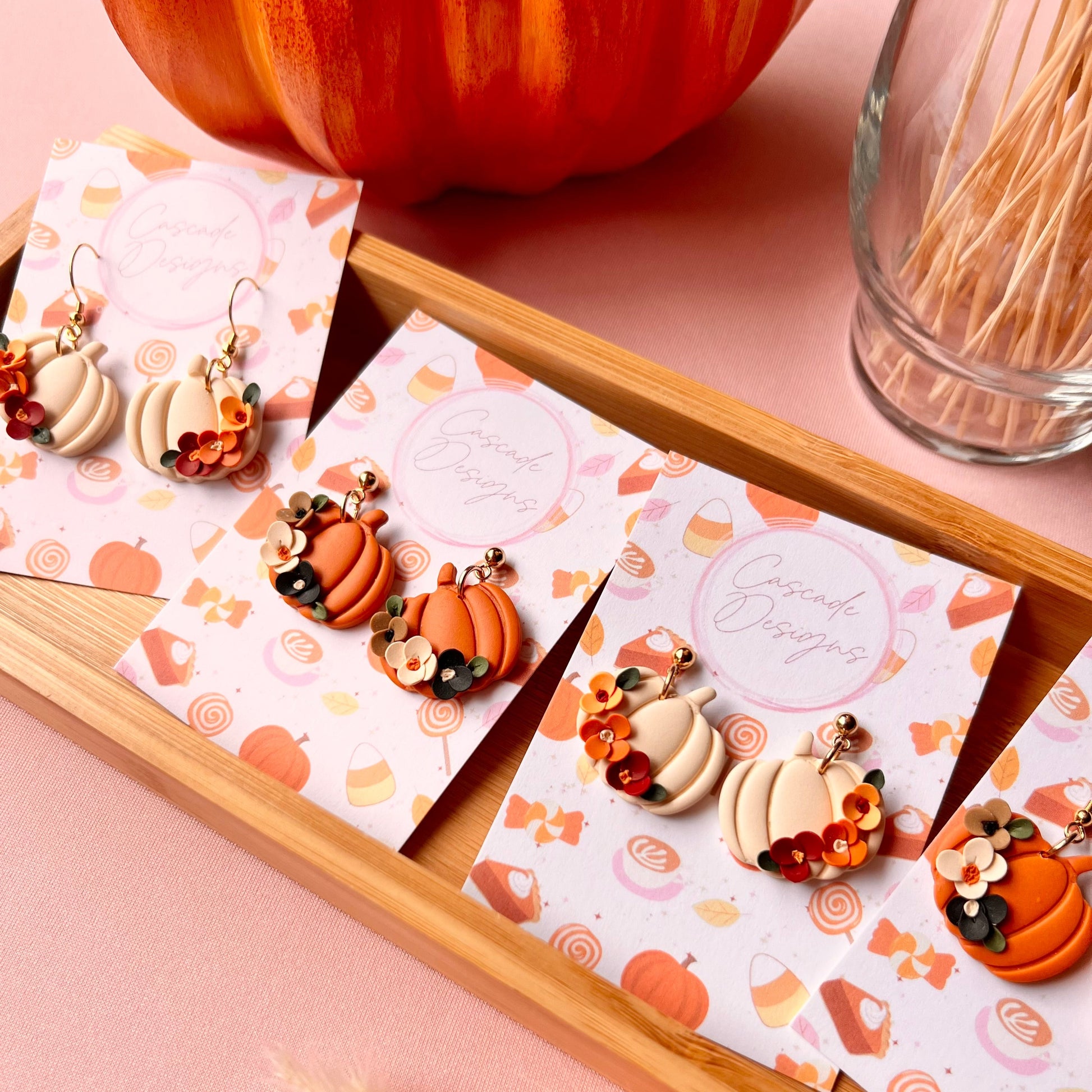 These floral-accented pumpkin earrings are handmade with love and designed to accent various styles! With a super lightweight design, these earrings are easy to wear for any occasion.