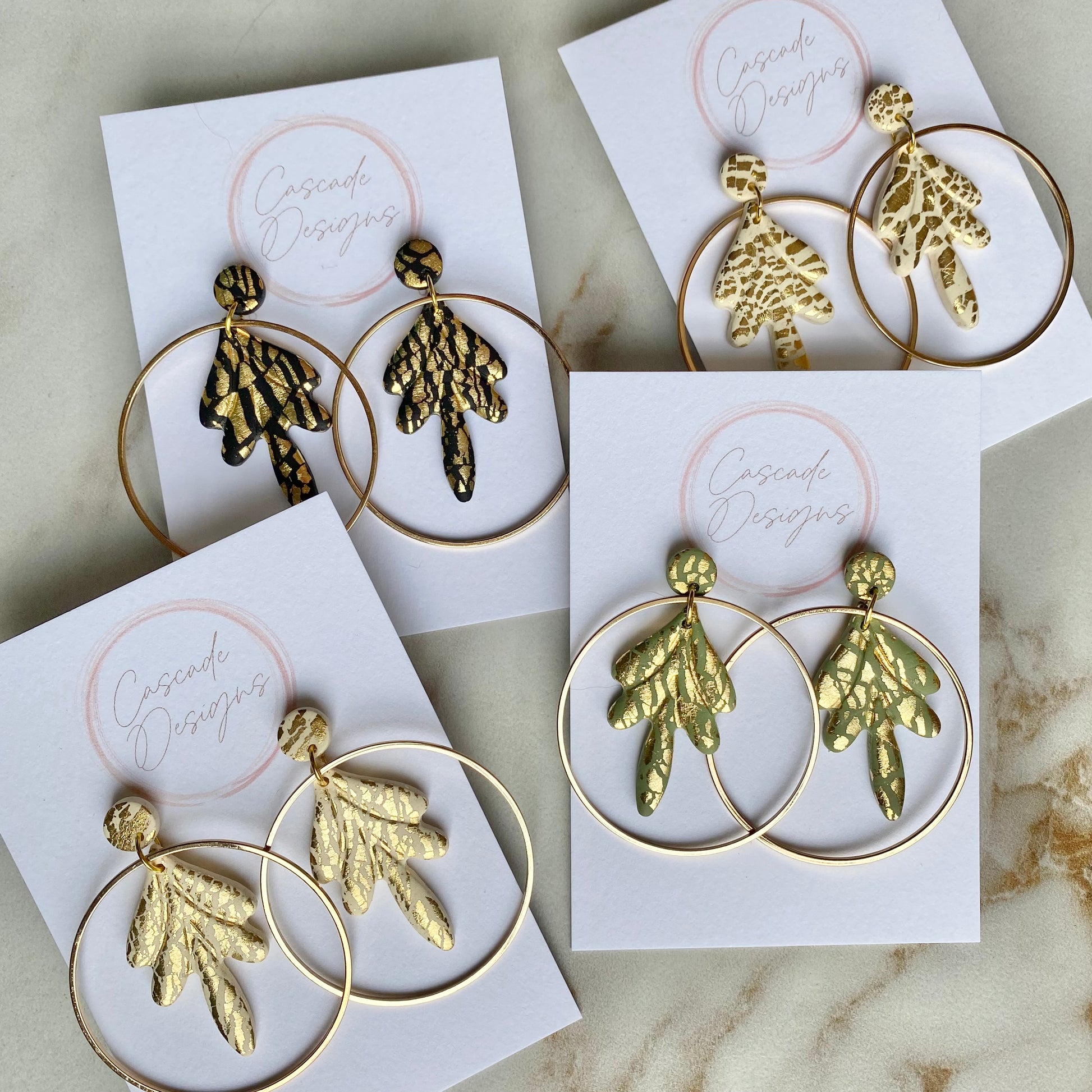 These shimmering gold flake polymer clay earrings are handmade with love and designed to accent various styles. With a super lightweight design, these earrings are easy to wear for any occasion.