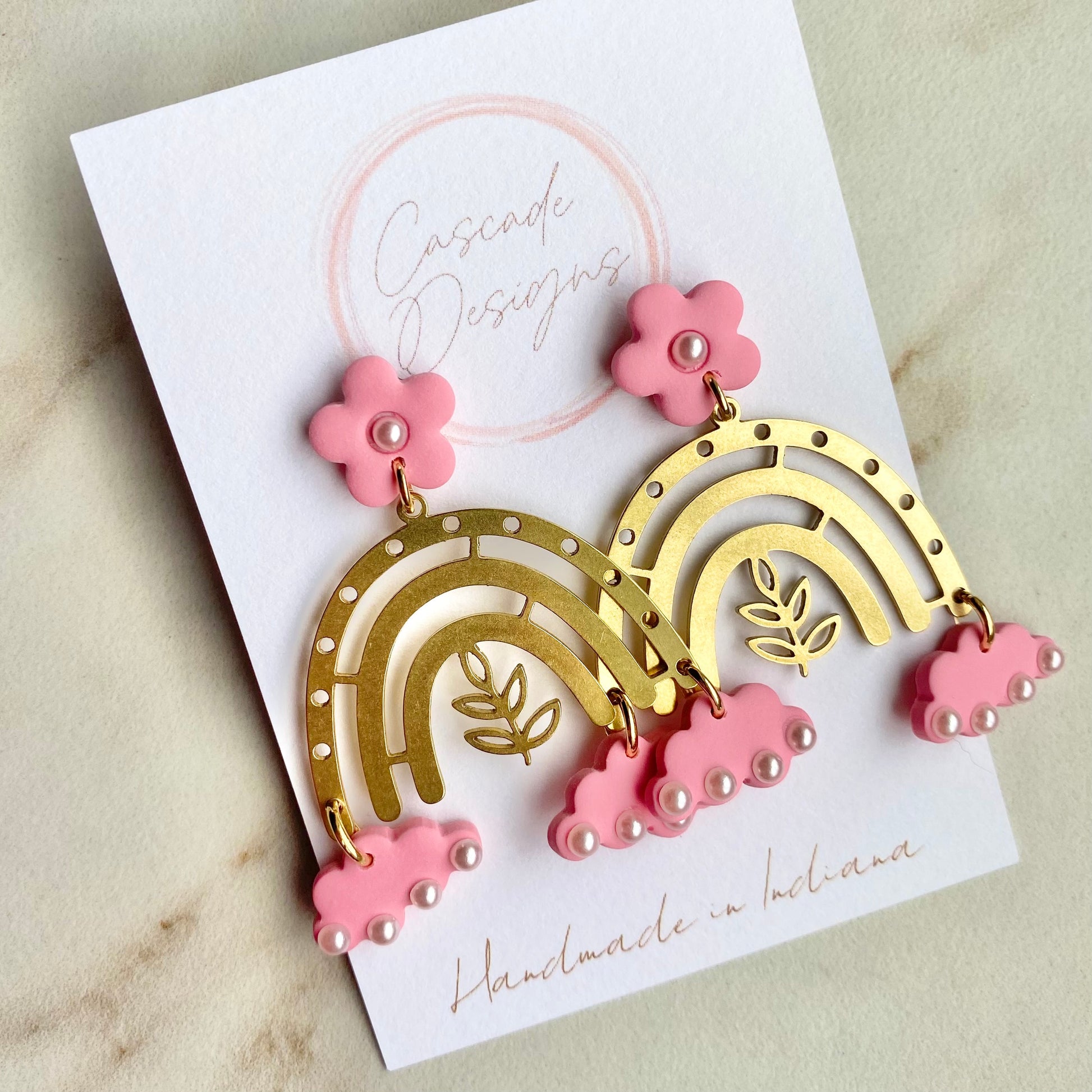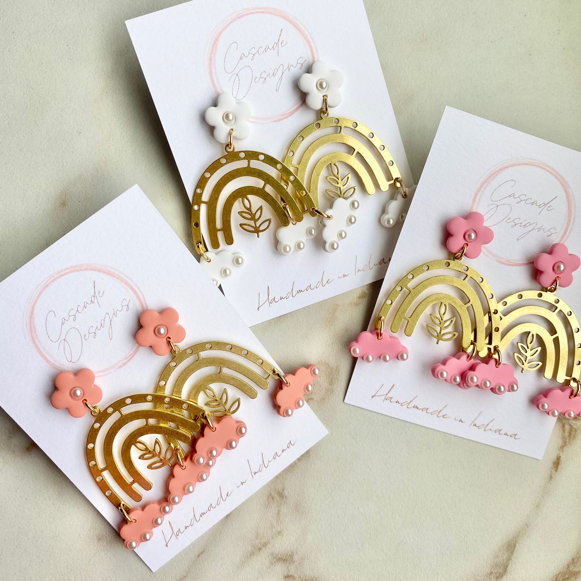 These flower and rainbow earrings are handmade with love and designed to bring a pop of color to your outfit! With a super lightweight design, these earrings are easy to wear for any occasion.