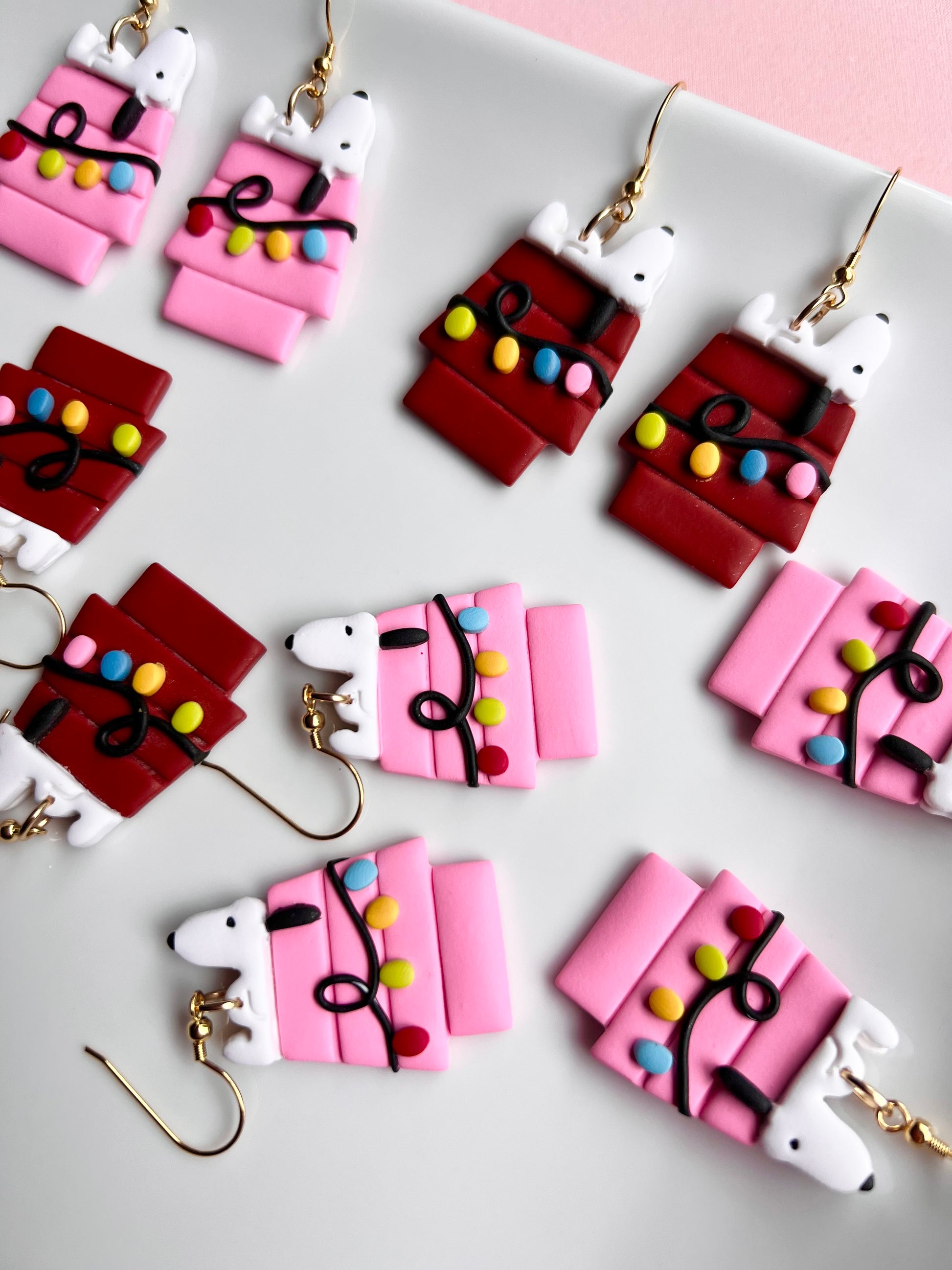 The Snoopi | Sleepy Doghouse and Christmas Lights Clay Earrings