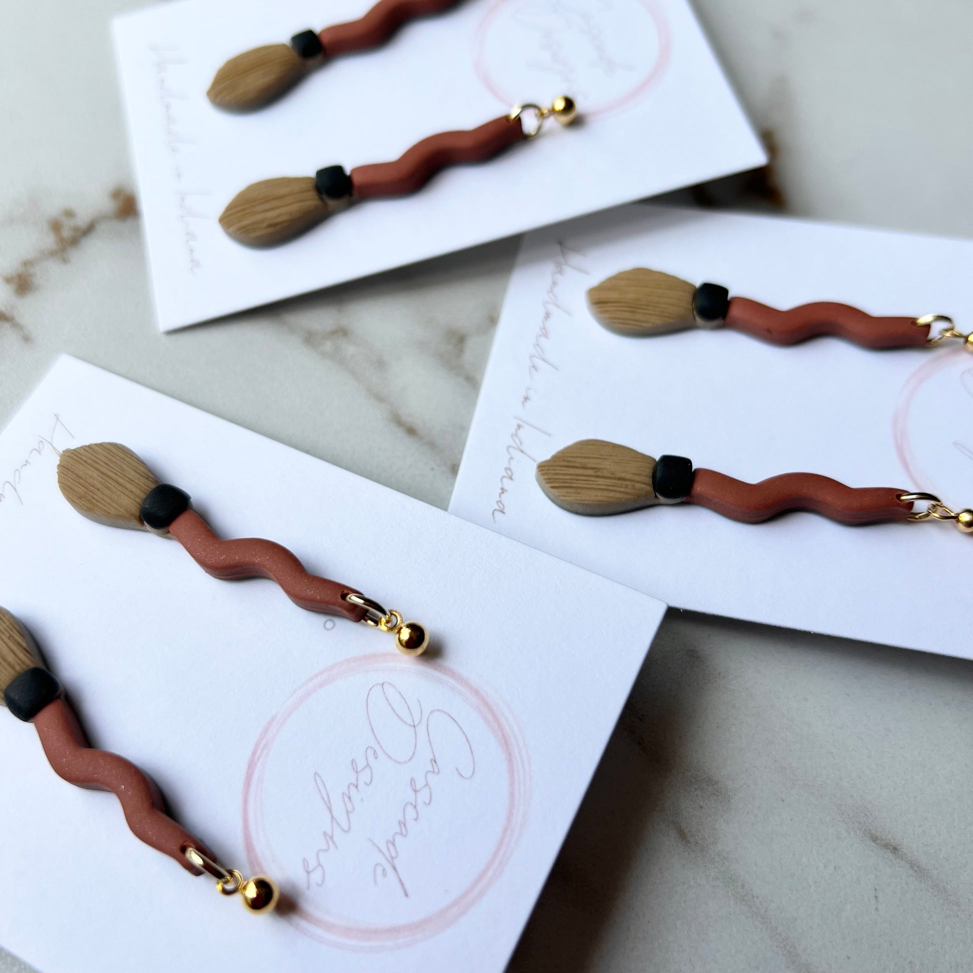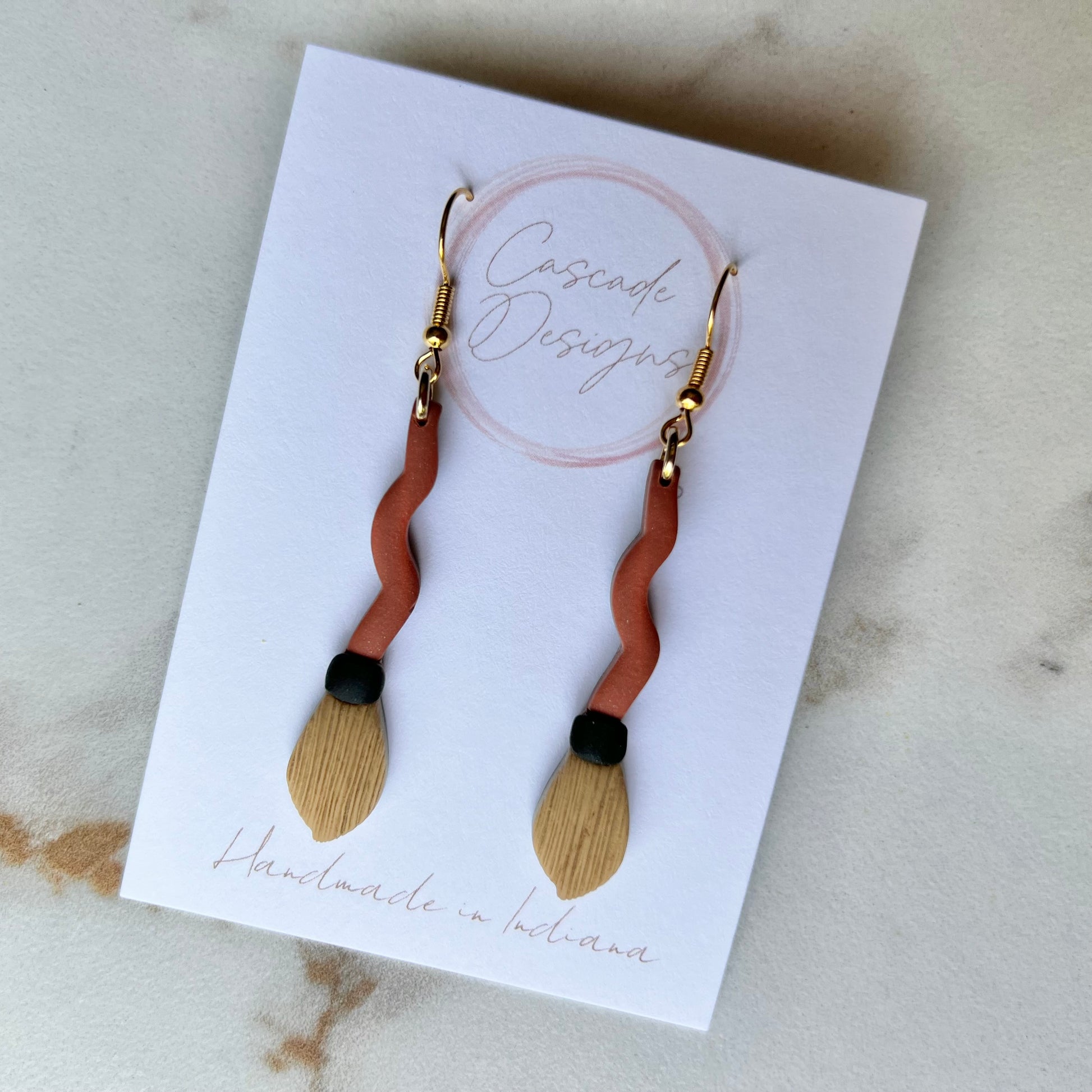 The Sweeper | Brown and Black Broom Earrings