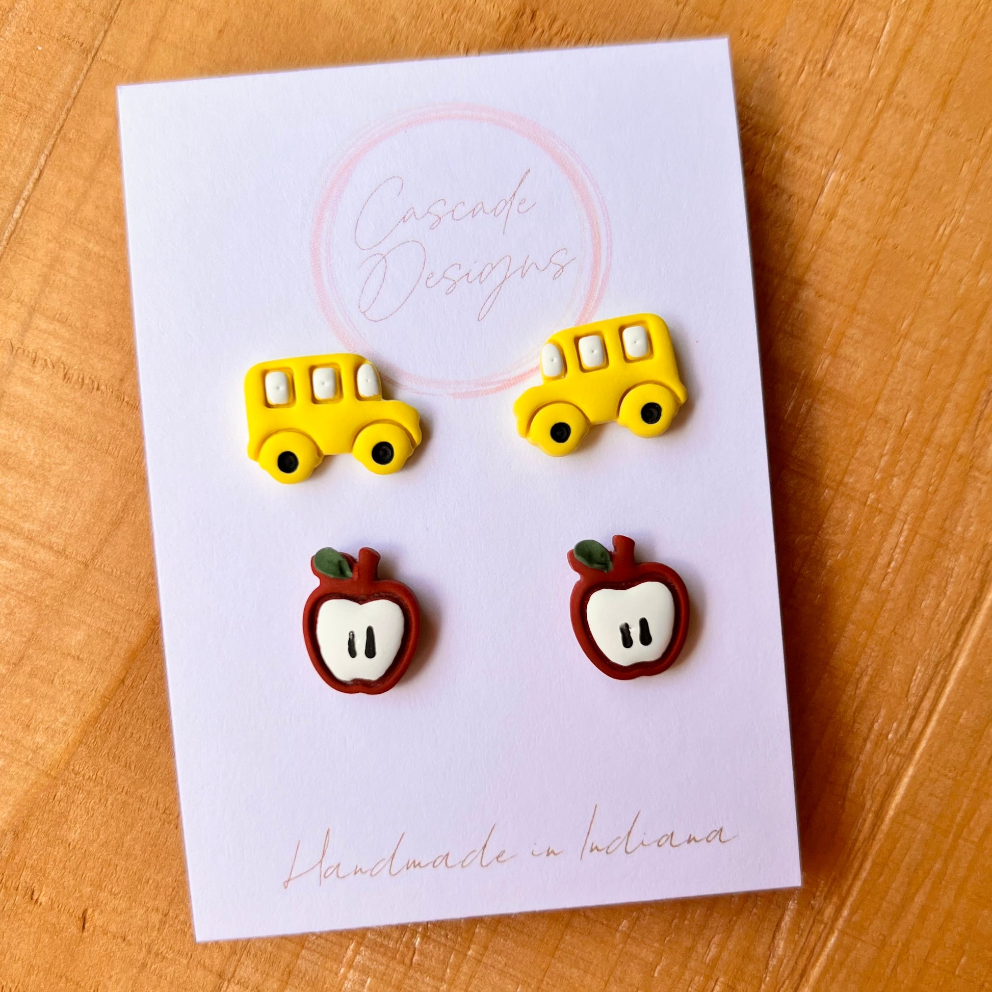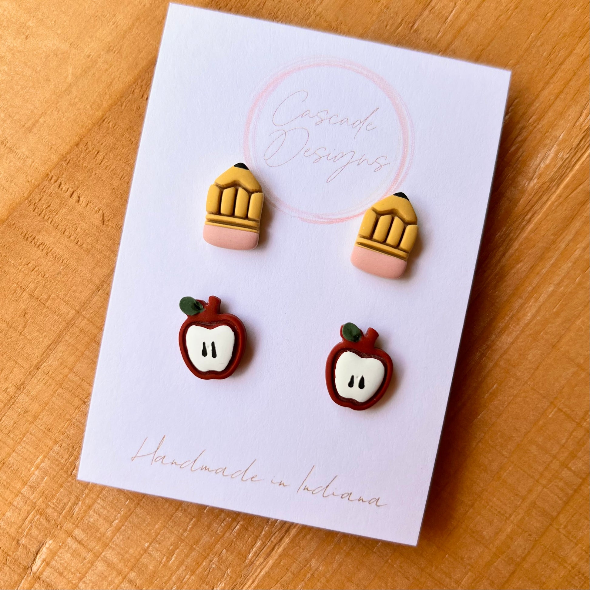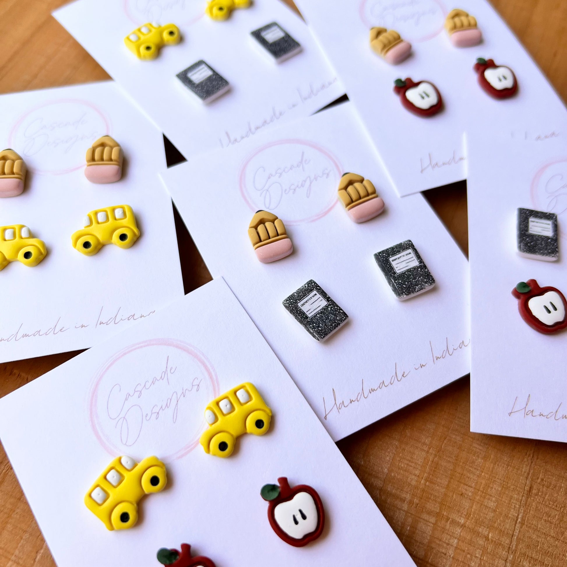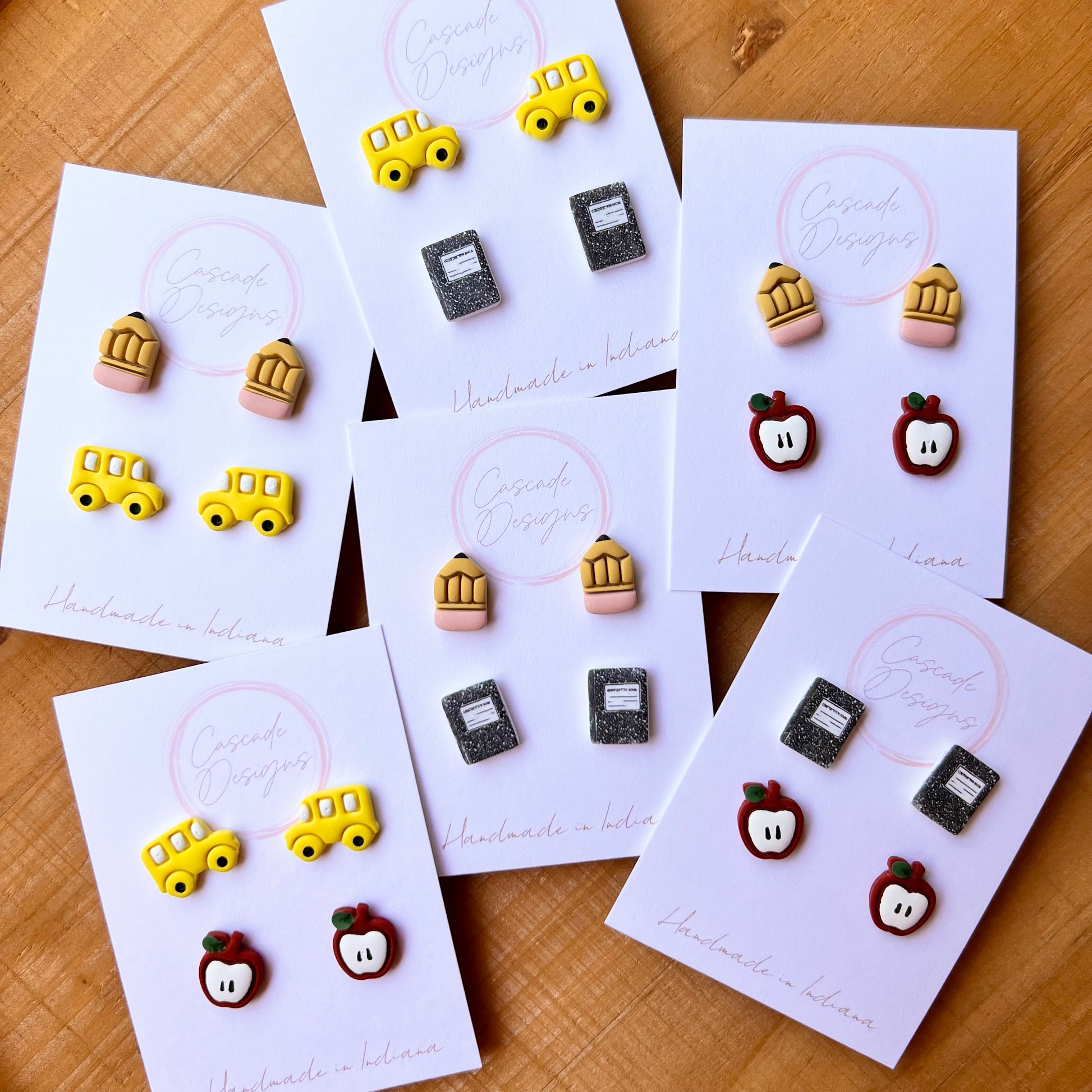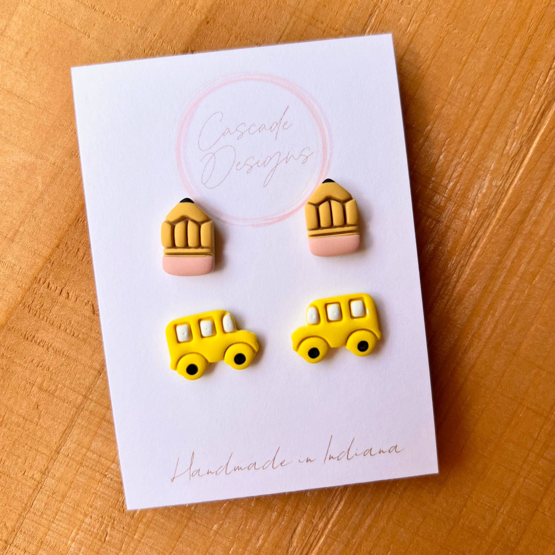 These back-to-school earrings are handcrafted with love and perfect for the classroom! With a super lightweight design, these earrings are easy to wear for any occasion. Our collections are handcrafted so actual pieces may have slight variations from the displays pictured.